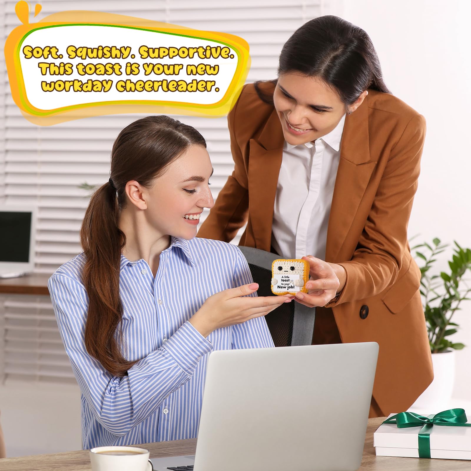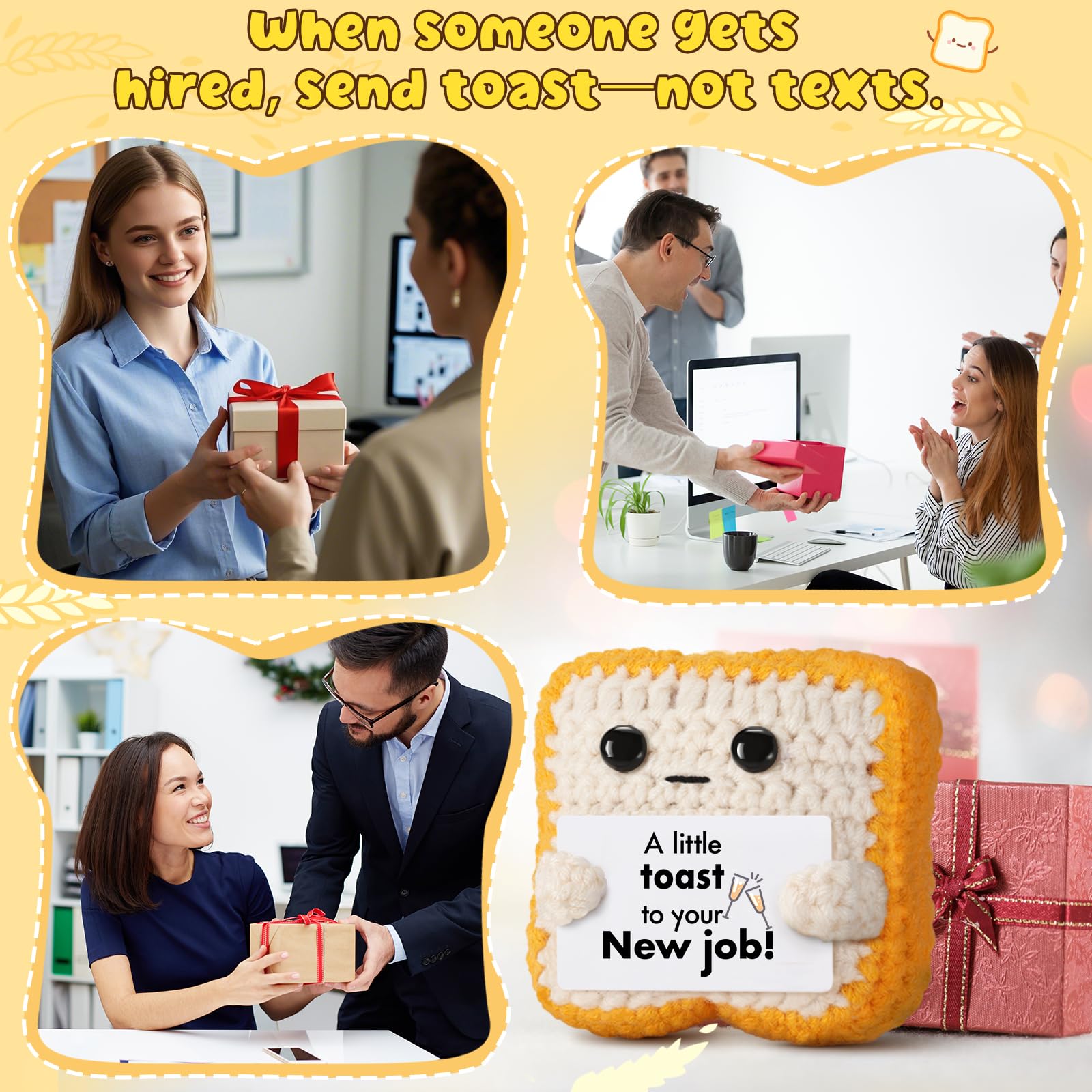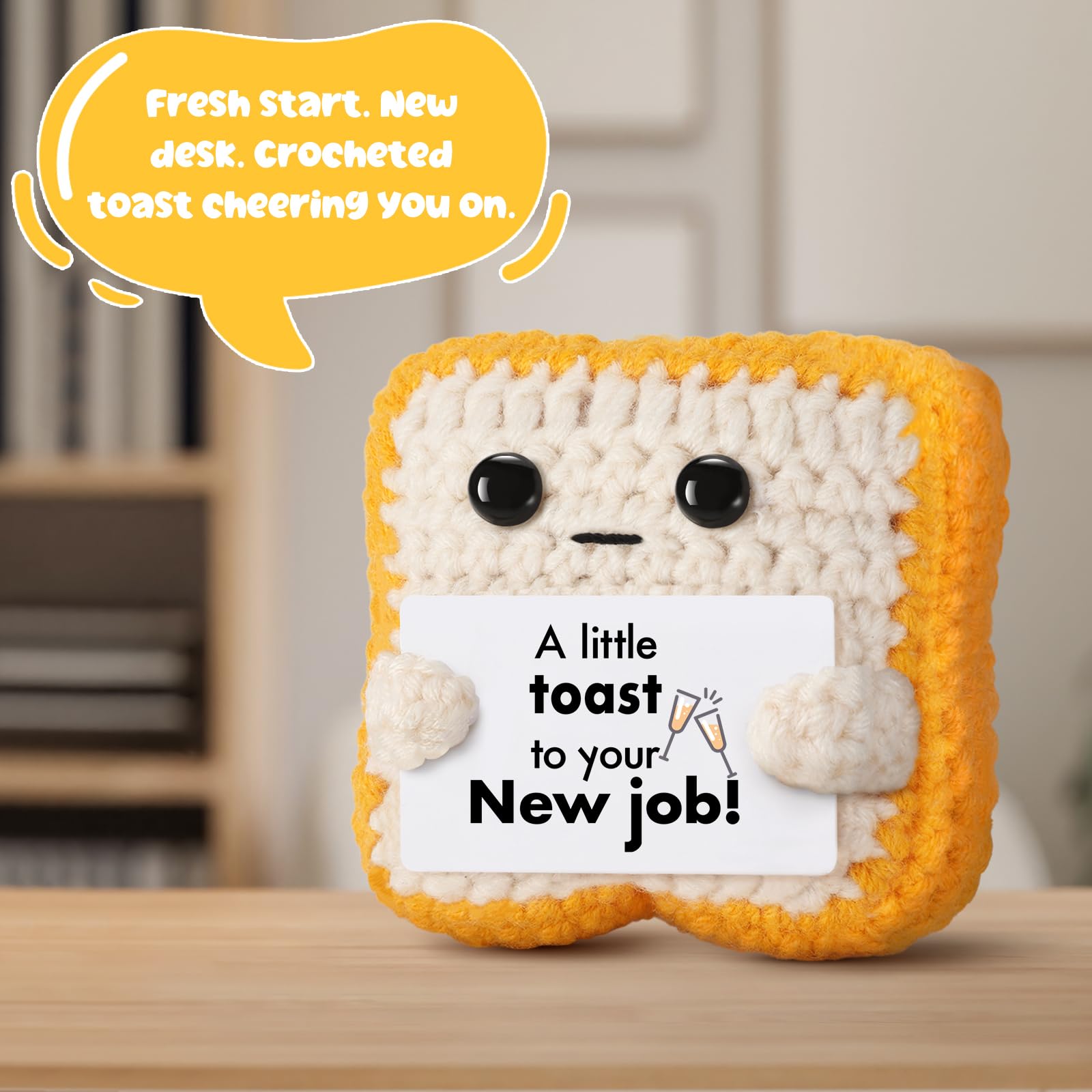 Handmade with Cozy Charm: Crocheted with soft yarn and full of personality, this toast plush makes a great desktop decoration or gift basket filler for someone starting a new chapter.