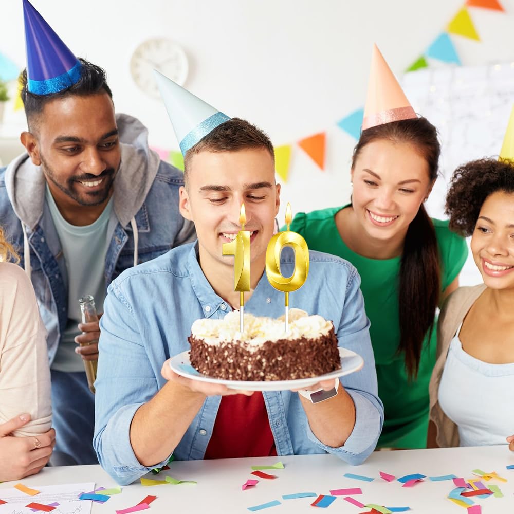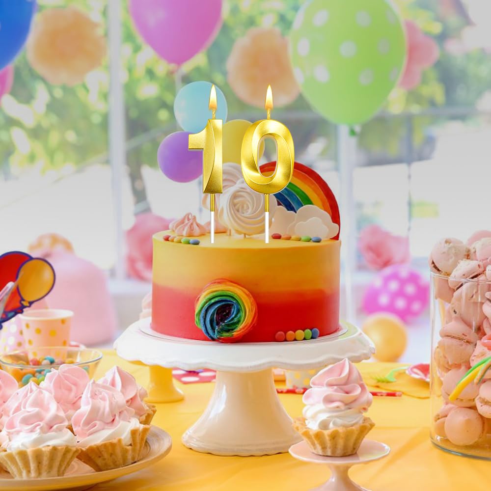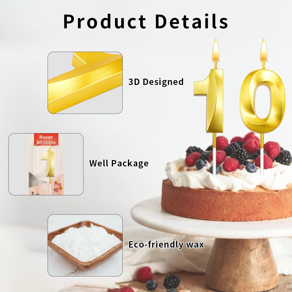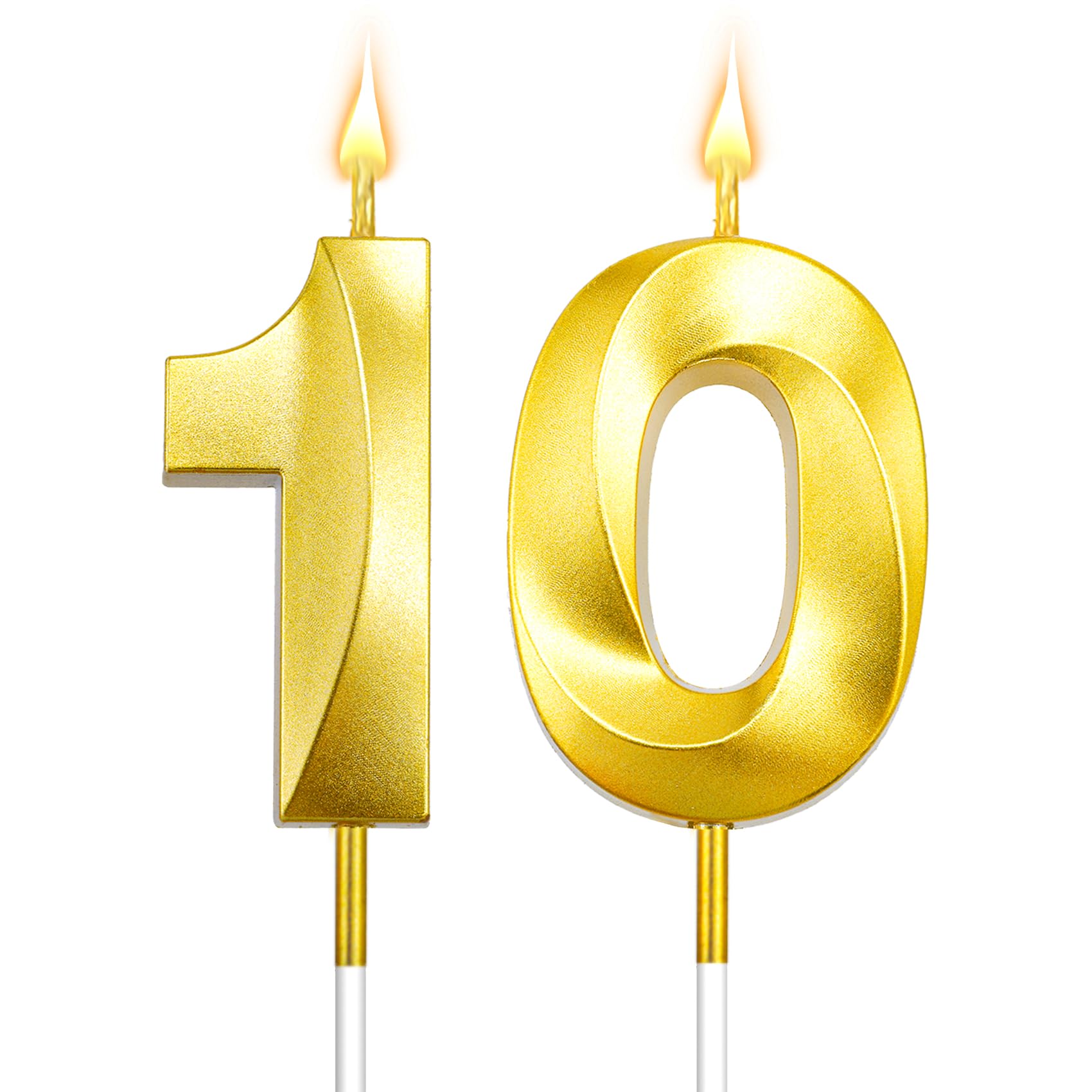 3d Visual Sense Birthday Candles: Package contains 2 Pcs gold birthday candles including number 1 birthday candle and number 0 birthday candle. The sparkling candles for cake is eye-catching and sparkling in the dark light, you can also use number candles to be beautiful cake decorations to embellish your cakes and cupcakes make your birthday cakes stand out, create the perfect birthday atmosphere. It's your special day and we want you to revel in the joy. 10 birthday candle number 10 candle