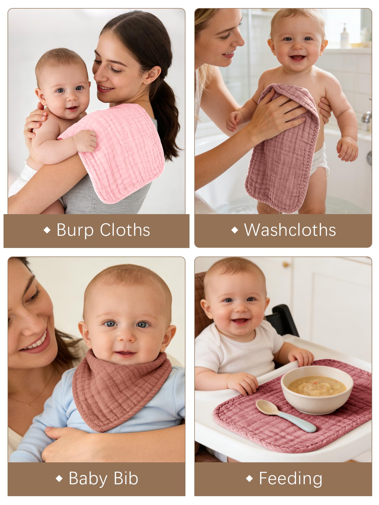 💎ULTRA ABSORBENT- These washcloths are perfect for catching spills and drools, thanks to the ultra-absorbent 100% cotton muslin fabric. It feels just like touching a soft cake, truly a baby essential item.