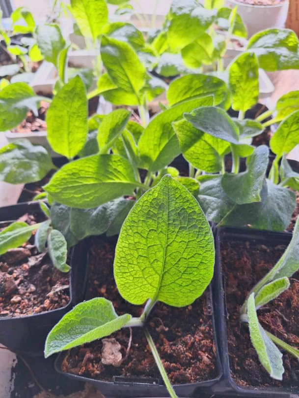 Enhance your garden with this Live Organic Russian Comfrey Plant (Bocking 14 Cultivar) – a fast-growing, nutrient-rich perennial known for its incredible soil-enriching properties. This 2-pack of well-rooted and established plants comes in 3” pots, ready to thrive in your garden. Comfrey, often called "knitbone", has been used for centuries as a natural fertilizer, compost accelerator, and medicinal herb. Its deep roots help break up compacted soil while drawing essential minerals to the surface, making it a valuable addition to any organic garden. Perfect for permaculture, composting, livestock forage, and regenerative gardening, this sterile Bocking 14 variety will not spread uncontrollably like common comfrey.