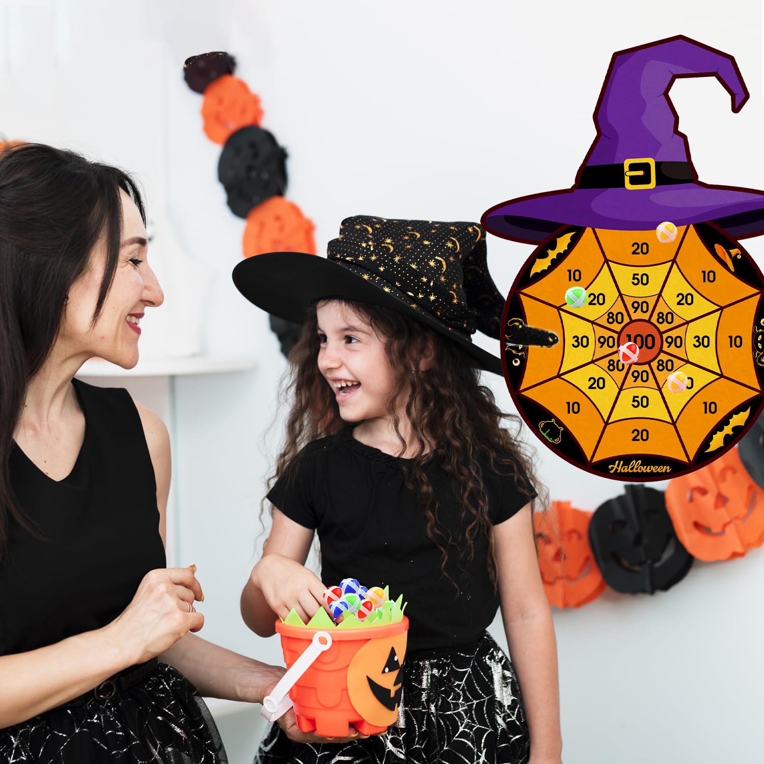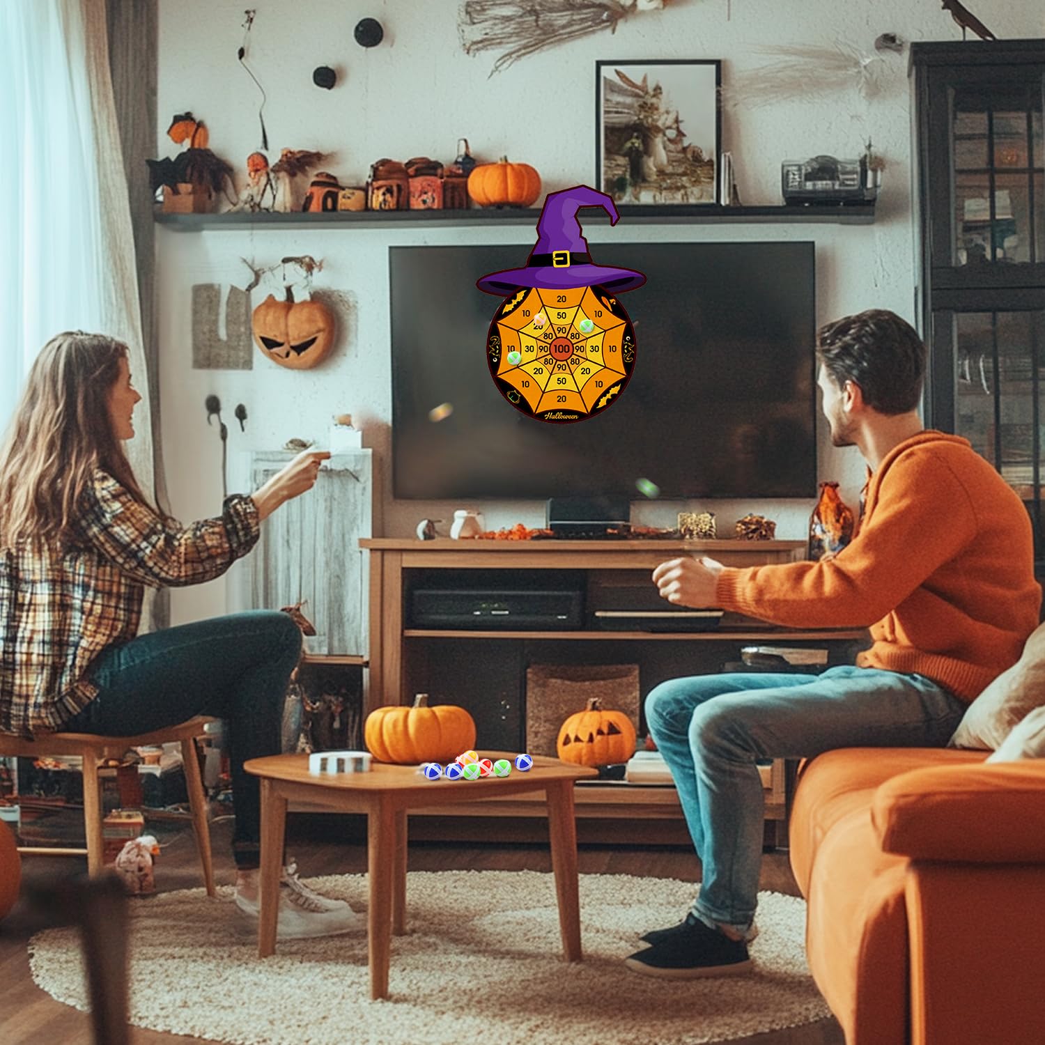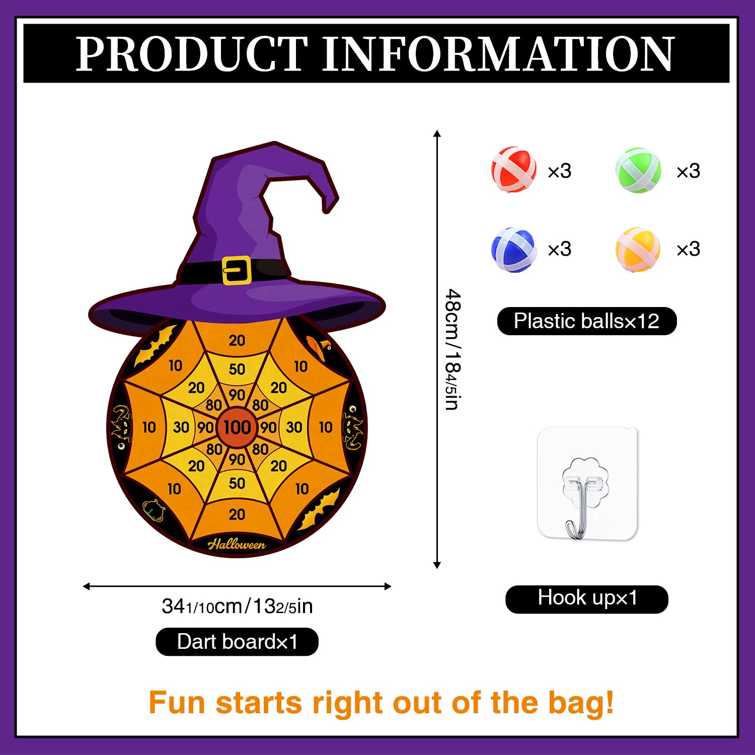 Halloween Carnival Games: Get ready for spooky fun with our Halloween dart board set! It includes 1 witch hat dart board and 12 sticky balls. Simply open the package and dive into the excitement—no complicated setup needed!