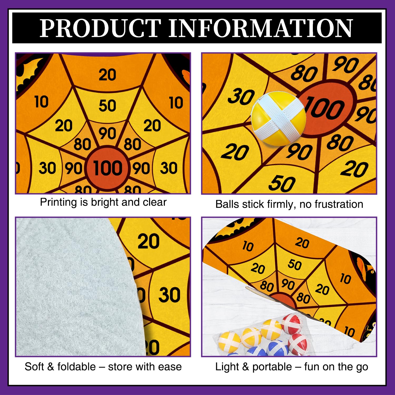 Mind every detail:The Halloween games feature large sticky balls to prevent swallowing them. The dart board is made of soft, skin-friendly felt material, ensuring it won't harm you.
