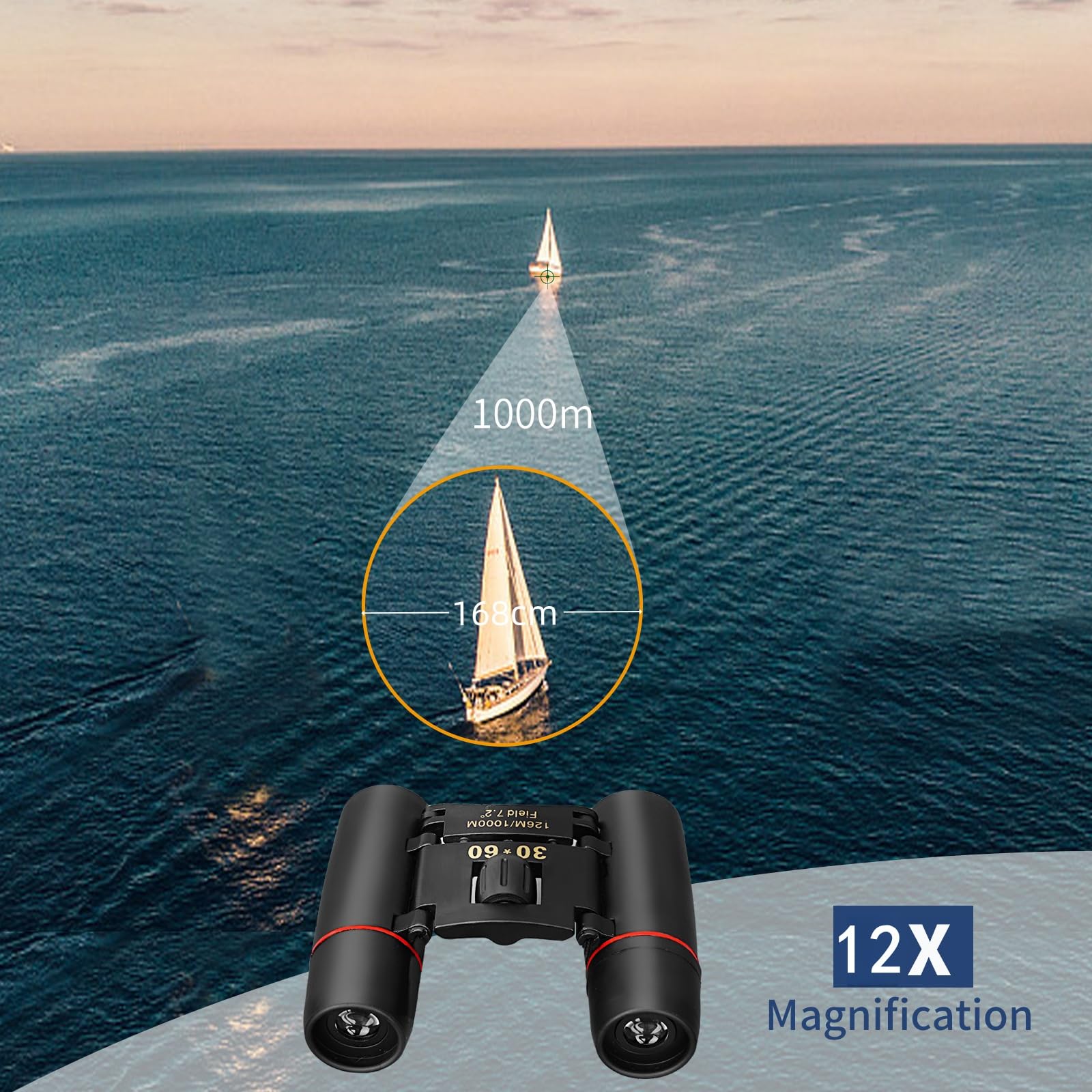 【Wide and Clear Field of View】- Professional Ultra Wide Angle 30*60 Optical Binoculars with 12x magnification, using high quality Bak-4 prisms and optics for truer color reproduction and clearer observation images.126M/1000M large field of view provides maximum image brightness in low light and long distance conditions, allowing you to get amazingly clear details from birdwatching, wildlife, and exploring.