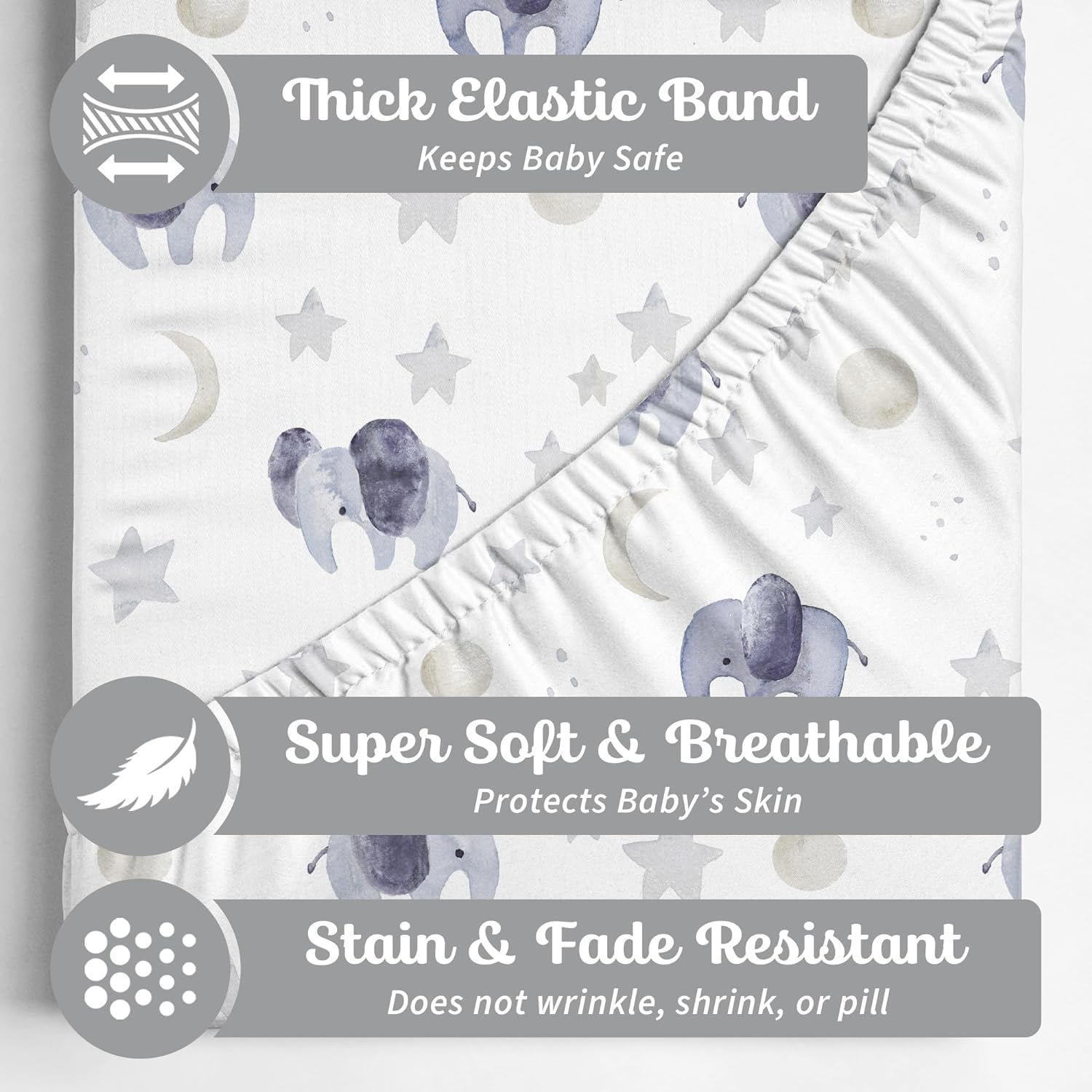 π BEAUTIFUL DESIGN, UNBELIEVABLY SOFT MATERIAL β This beautiful custom pattern is printed on the most luxuriously premium organic cotton blend. Thicker elastic and deeper pockets ensure that our bassinet mattress sheets will NOT slip off the mattress pad. Youβll feel the soft, yet stretchy and silky material as you pull the sheets and snug, creating a safe and soothing space for your baby to sleep.