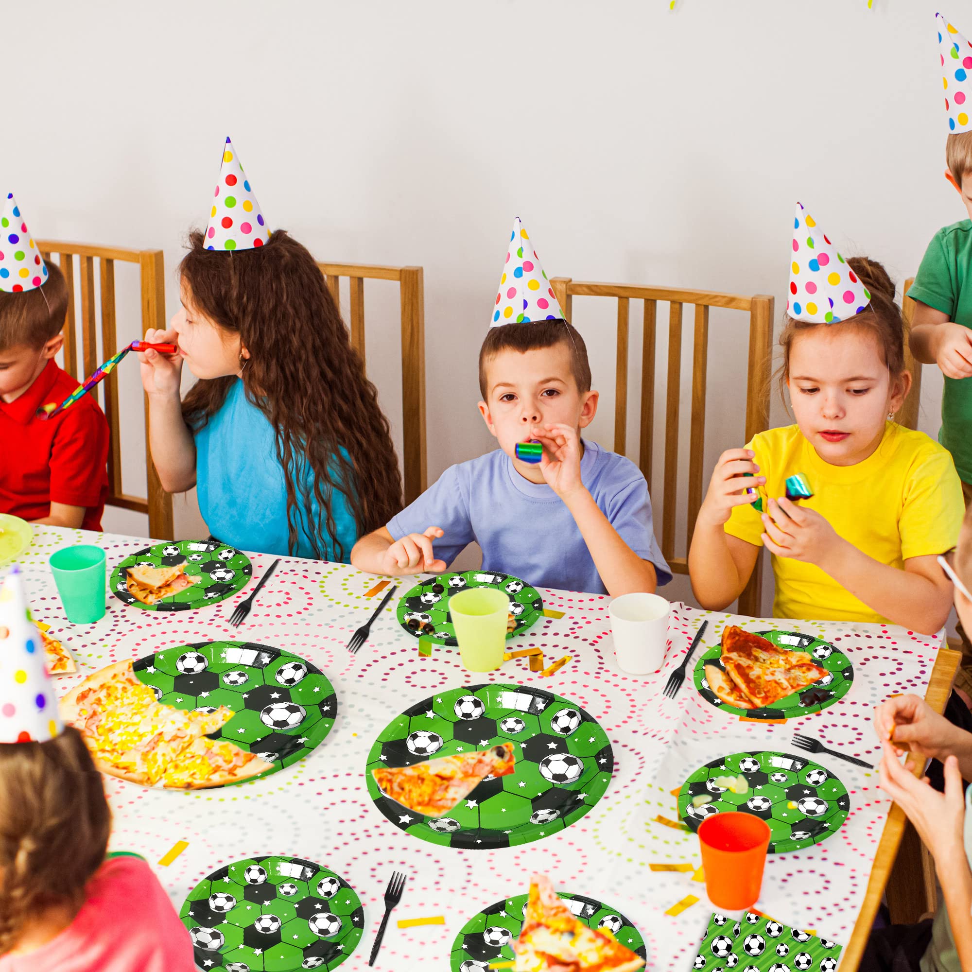 Soccer Party Table Settings: These soccer party tableware kits can serve 24 guests, enough quantity for a normal soccer theme big day, especially for soccer fans. These soccer party decoration kits will make your table settings look fantastic and all your guests will be happy.