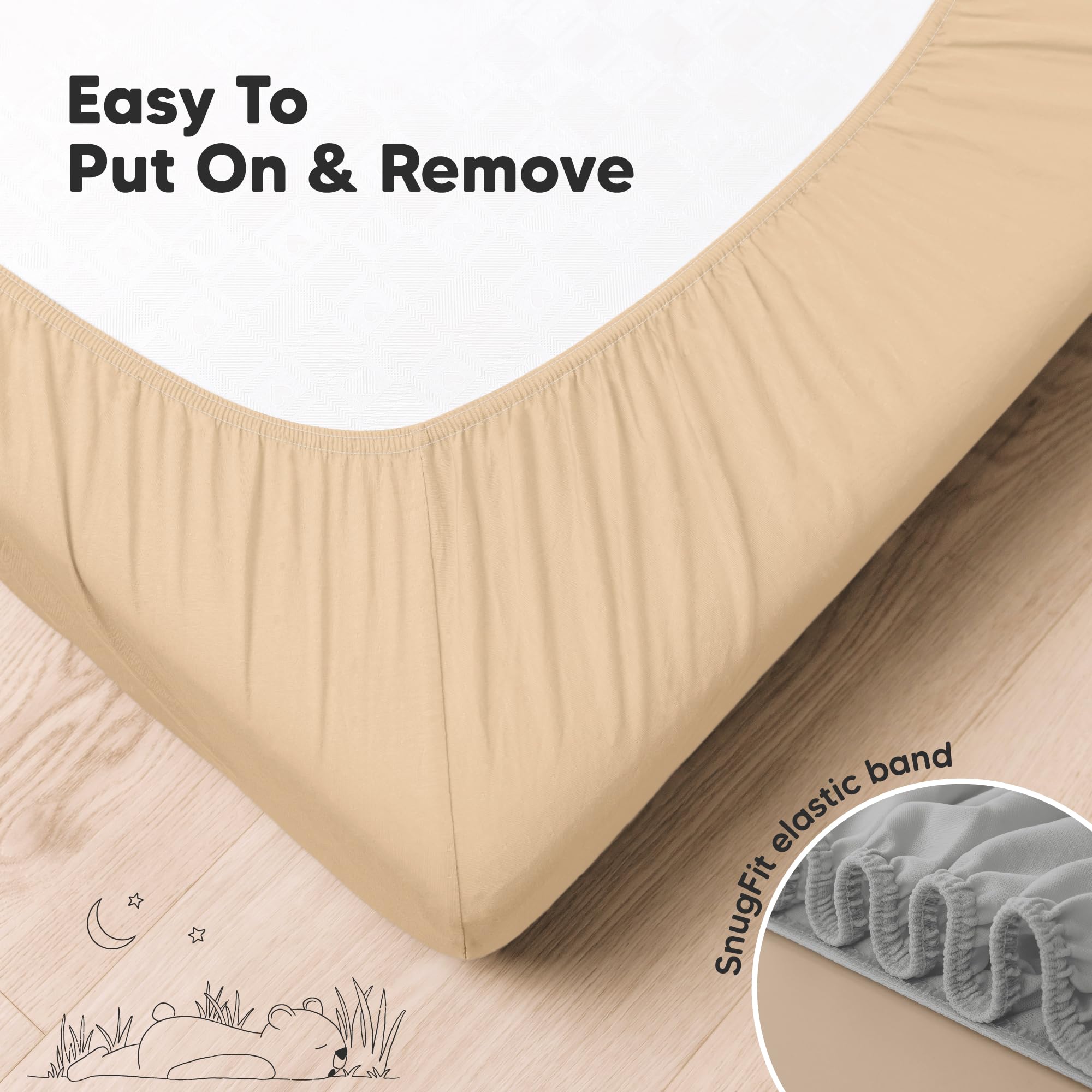 Easy To Put On - Our baby sheets for crib use SnugFit Tech, a smart fabric knit that stretches effortlessly for quick fitting and removal of the toddler bed sheets. No more struggling with rigid fabric!