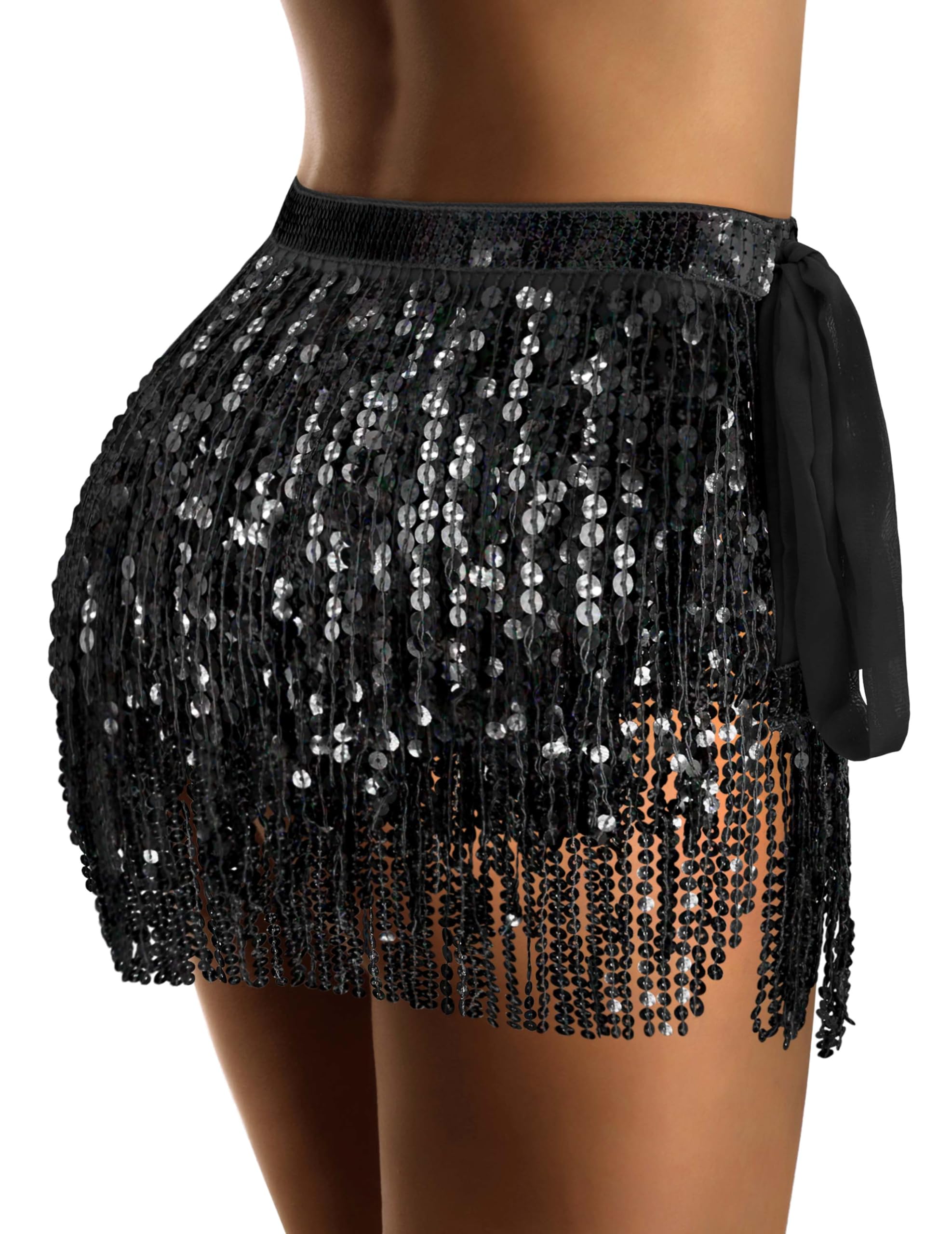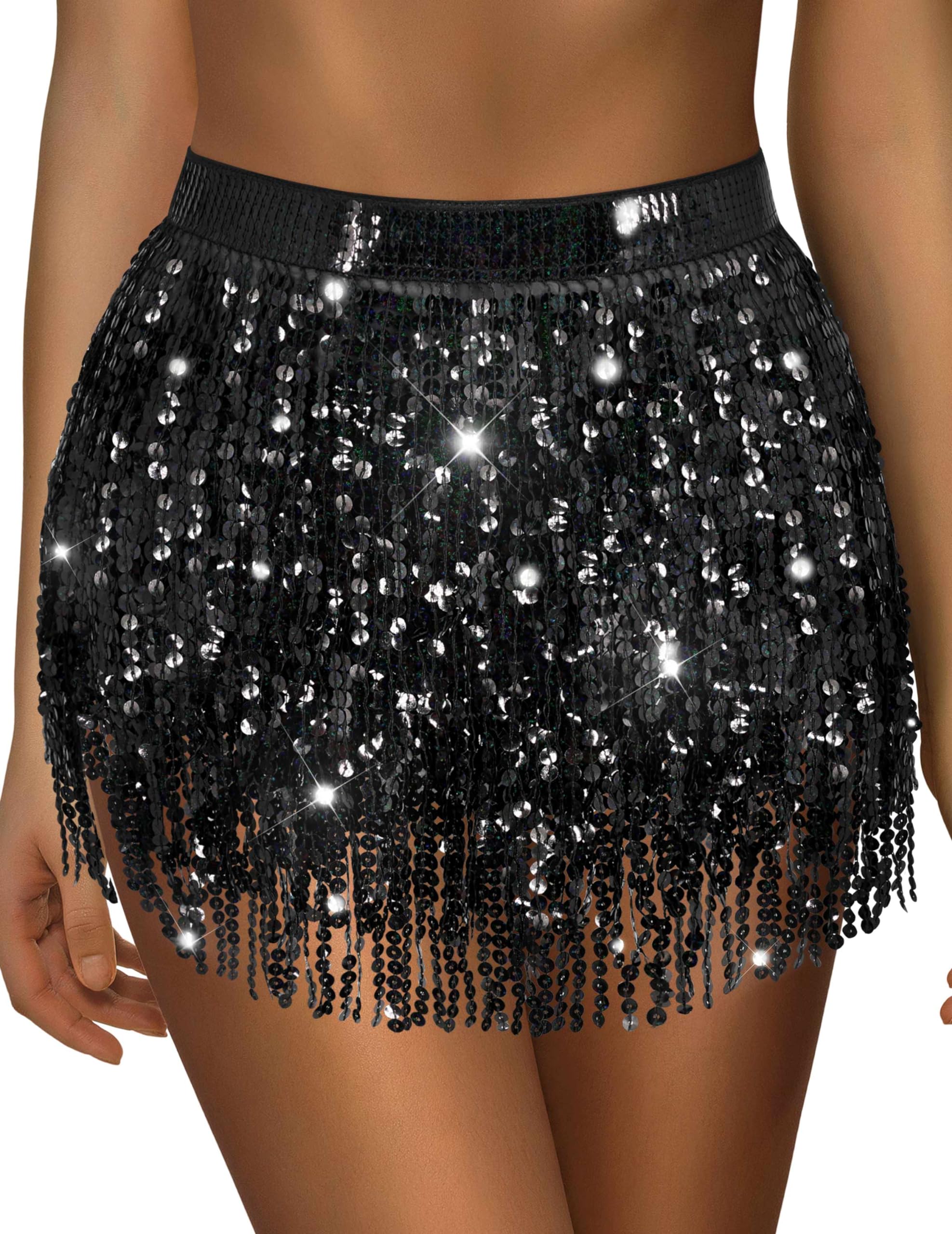 EXCELLENT FASHION ACCESSORY: The tassle sparkle skirt is a perfect choice to match your clothes and you can wear it as beach outfit, belly dance outfit, rave outfit and others. There are several colors for you to choose to meet your various needs. Wear the sparkle flapper skirt, you'll be sexy queen.