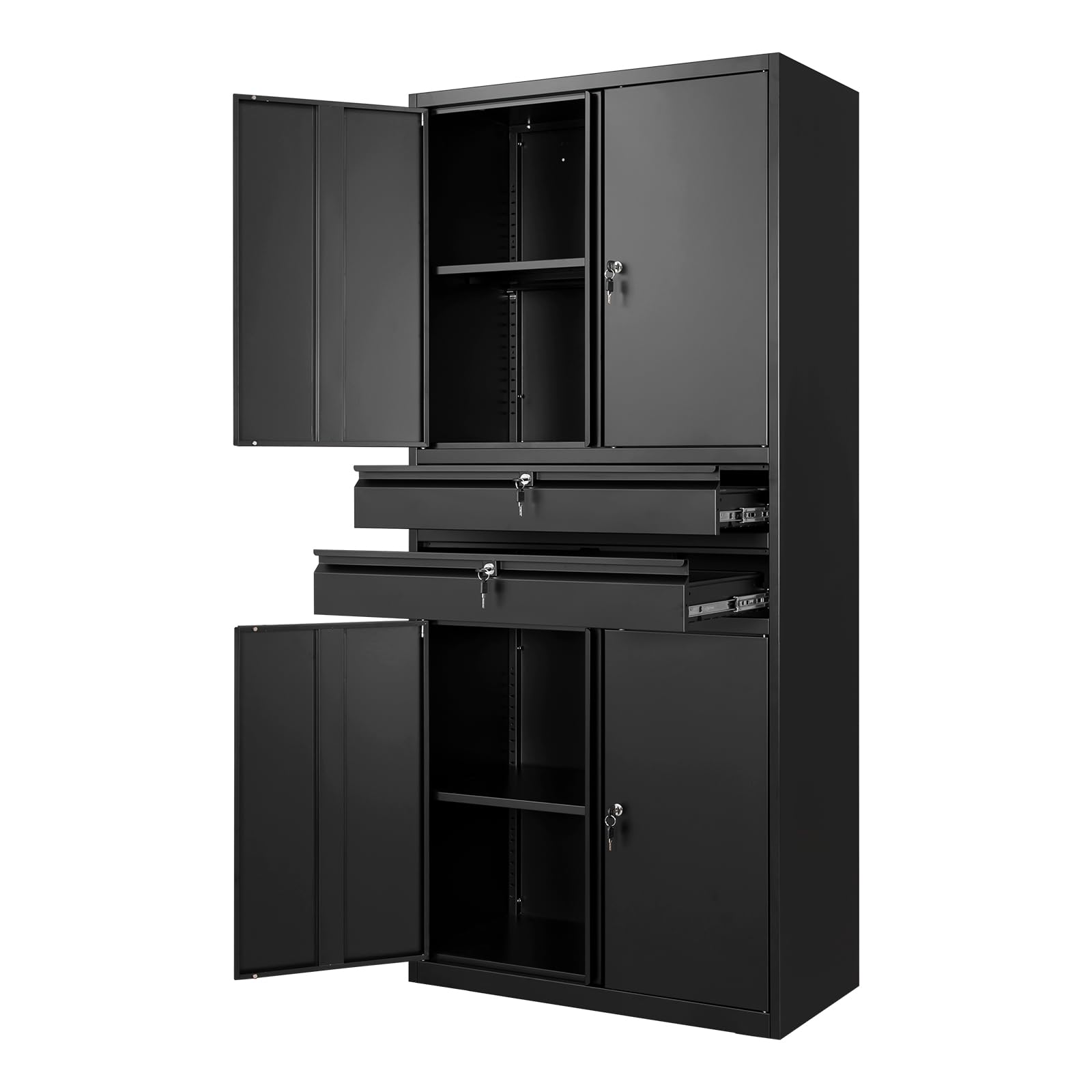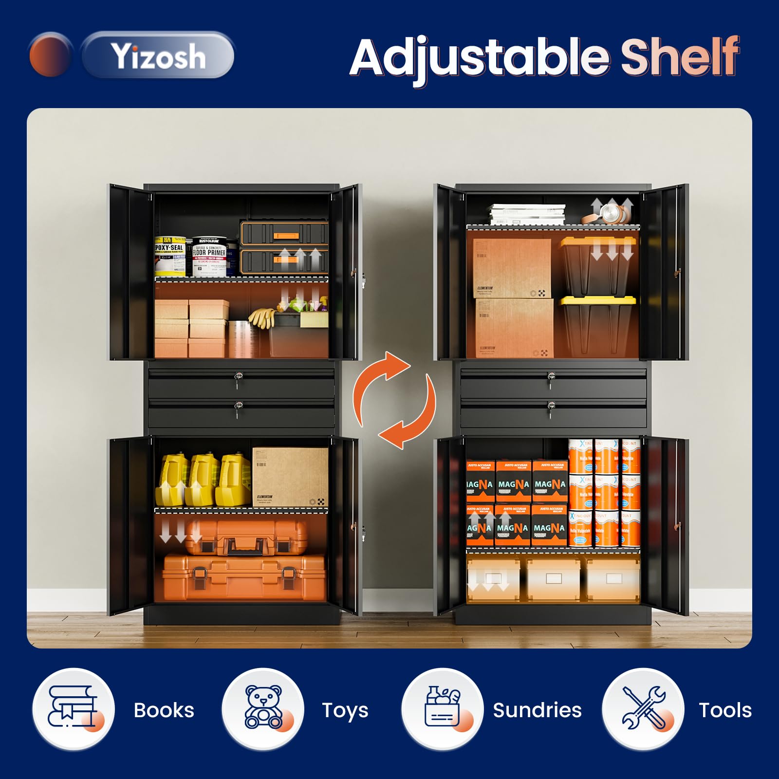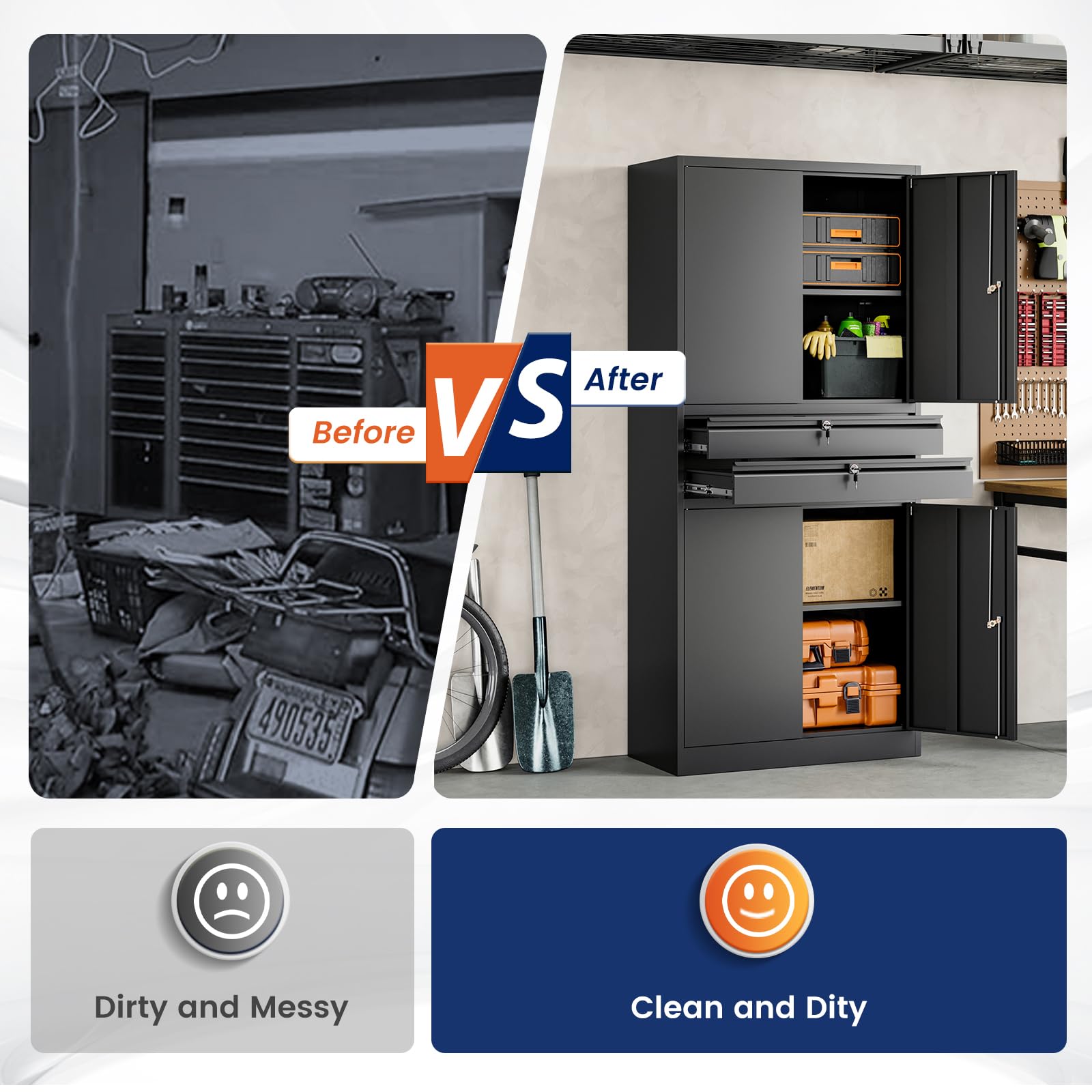『PRACTICAL DESIGN』:Our tall metal cabinet equipped with 2 drawer and 2 adjustable shelves to provide adaptability and convenience. High-grade lock picking to secure valuables, two keys are included. Regardless of what your storage needs are, you have the ability to create a unique storage space to suit them.