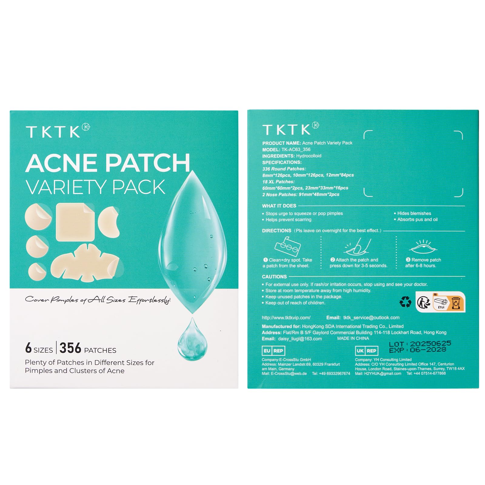 6-Size Versatile Coverage: Tackle breakouts anywhere with TKTK acne patch variety! Includes 8, 10, 12mm acne spot patches for small to medium zits; 60x60mm large pimple patches for back or cheeks breakouts; 91x48mm large nose strips for pores; and 23x33mm contoured patches for curved areas like chin and nose bridge. Perfect for face and body