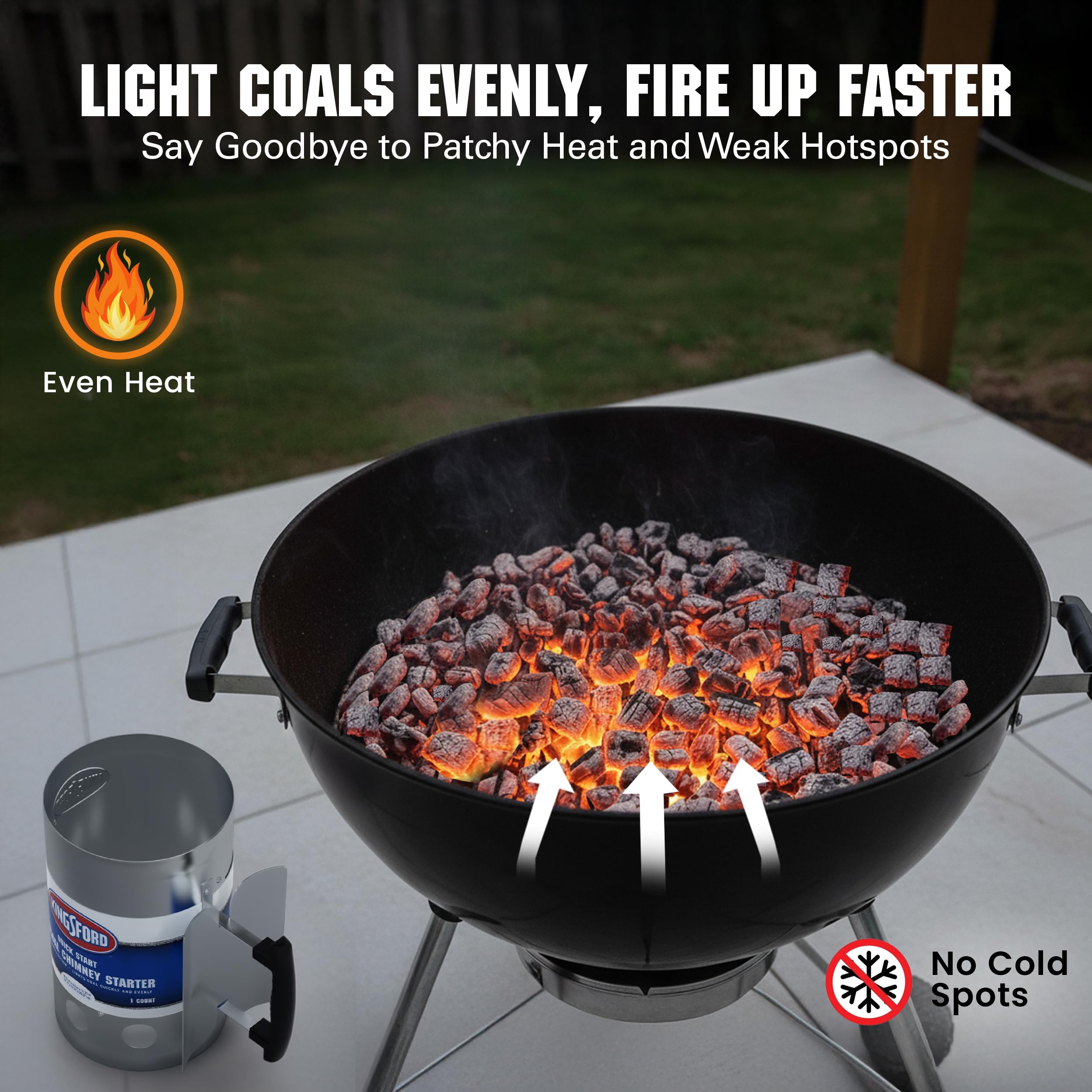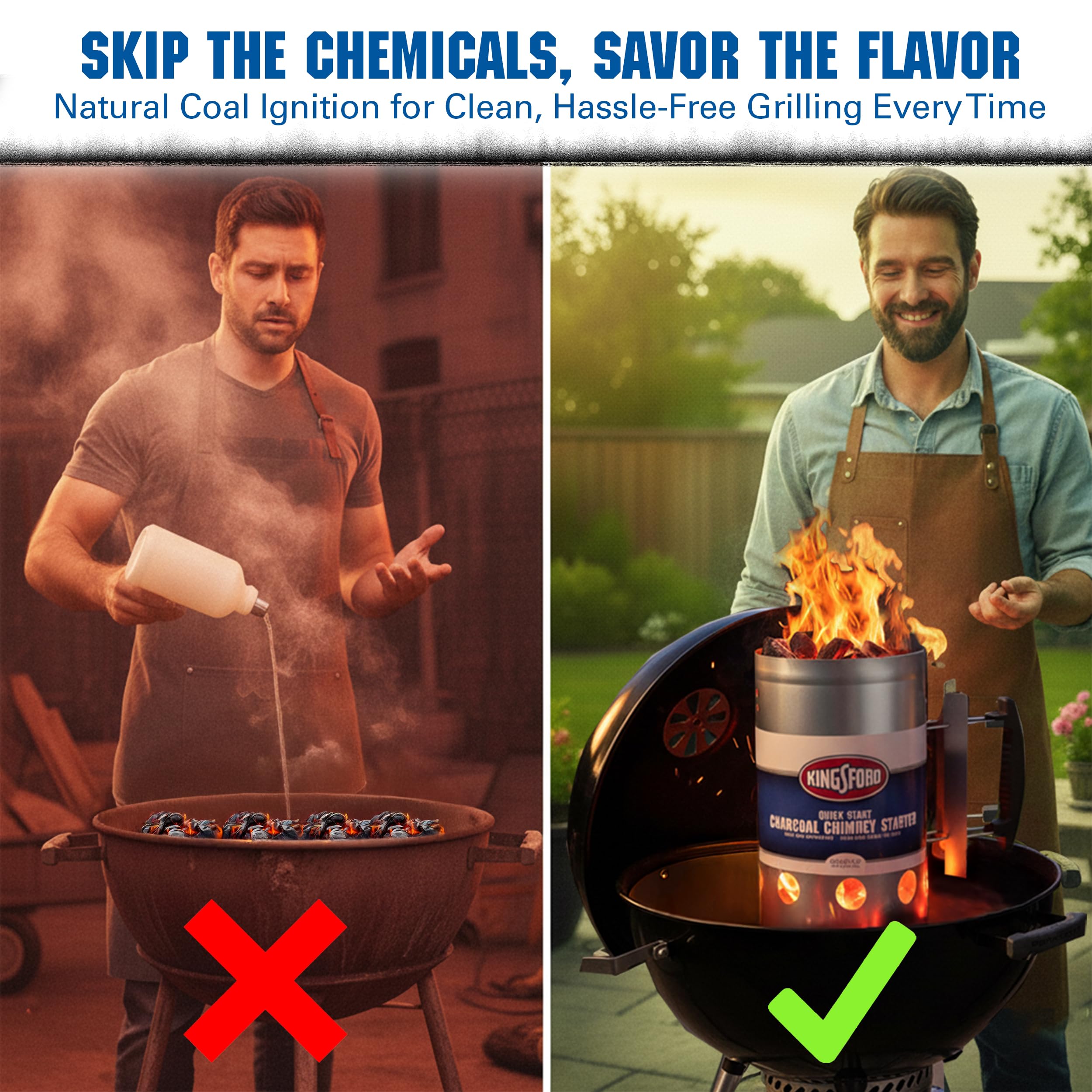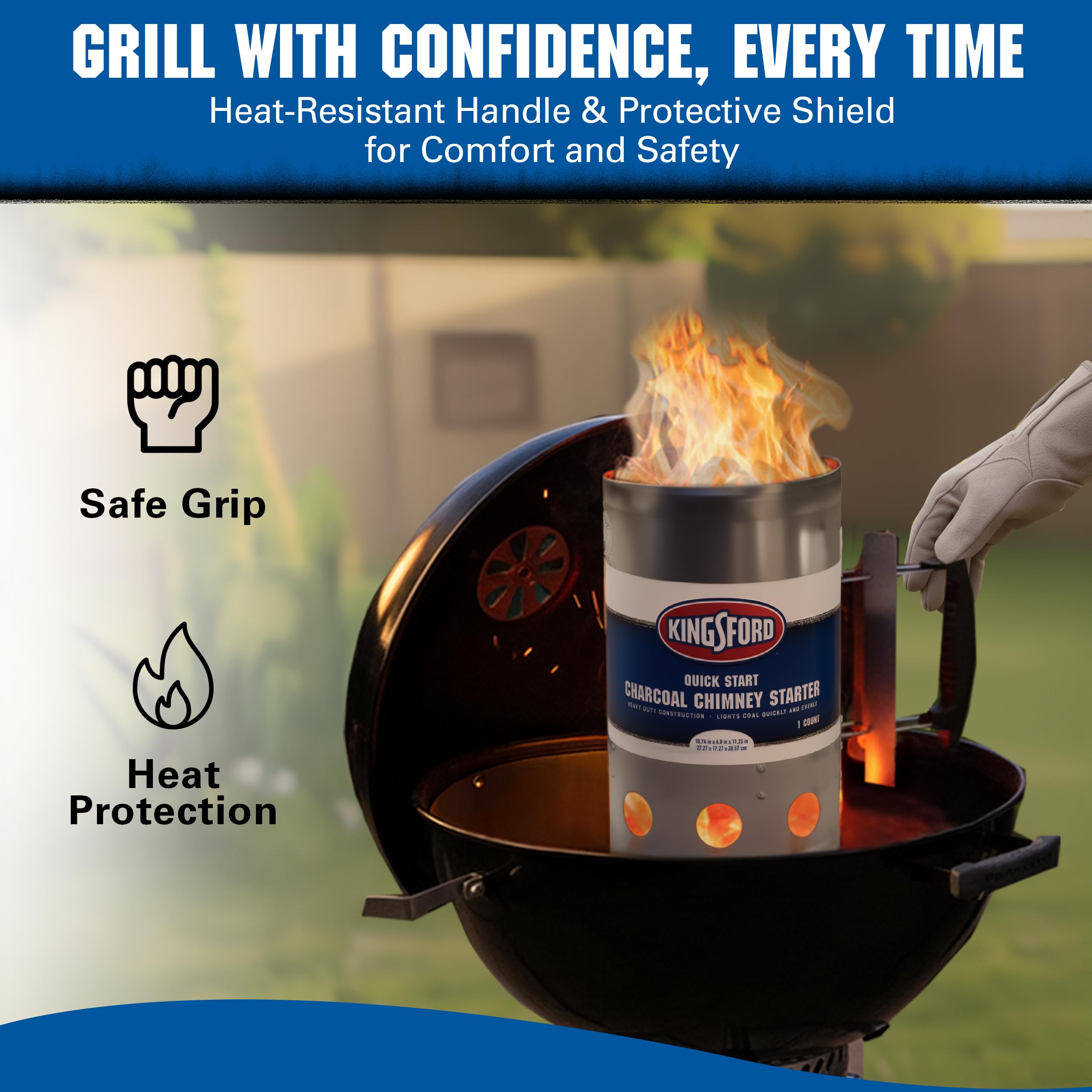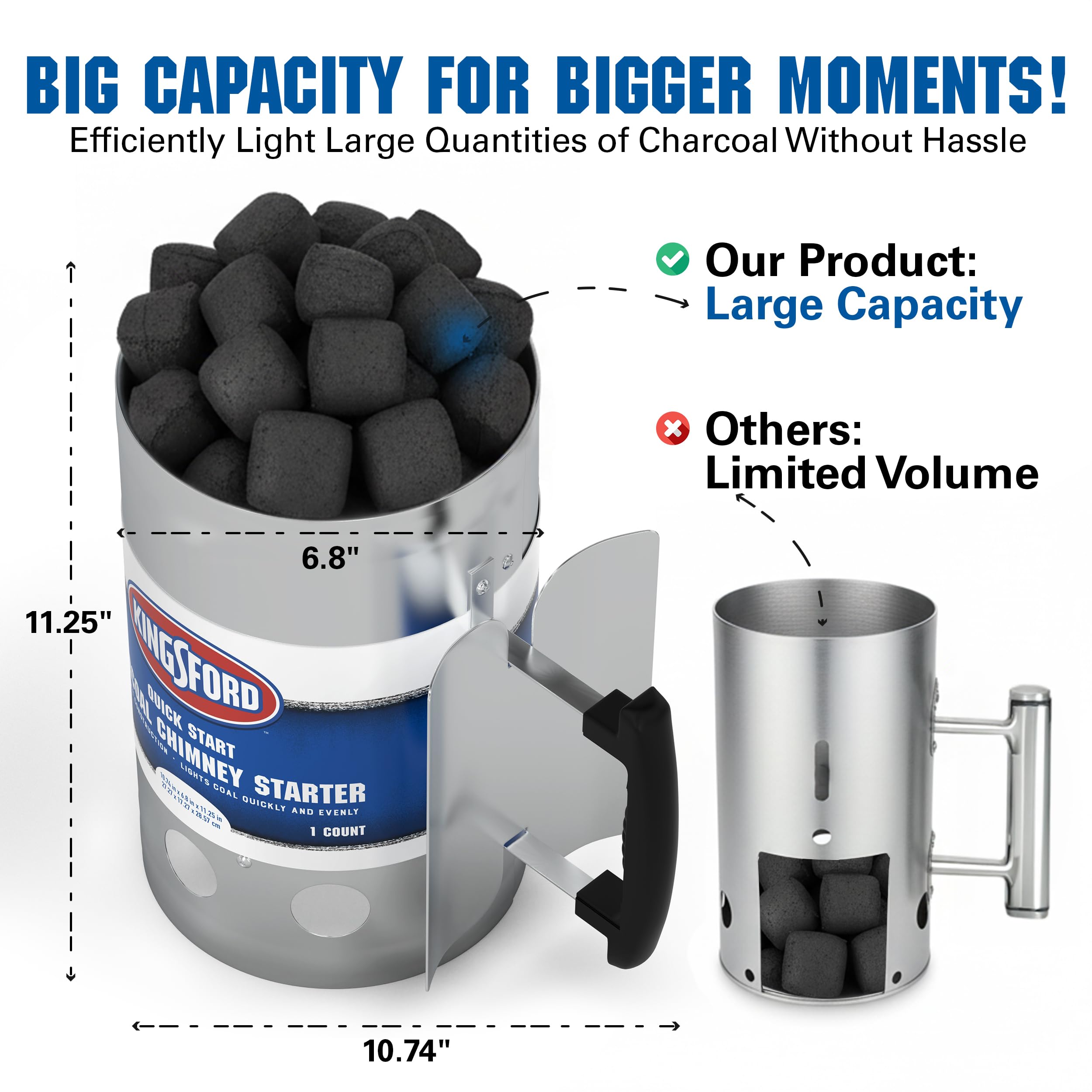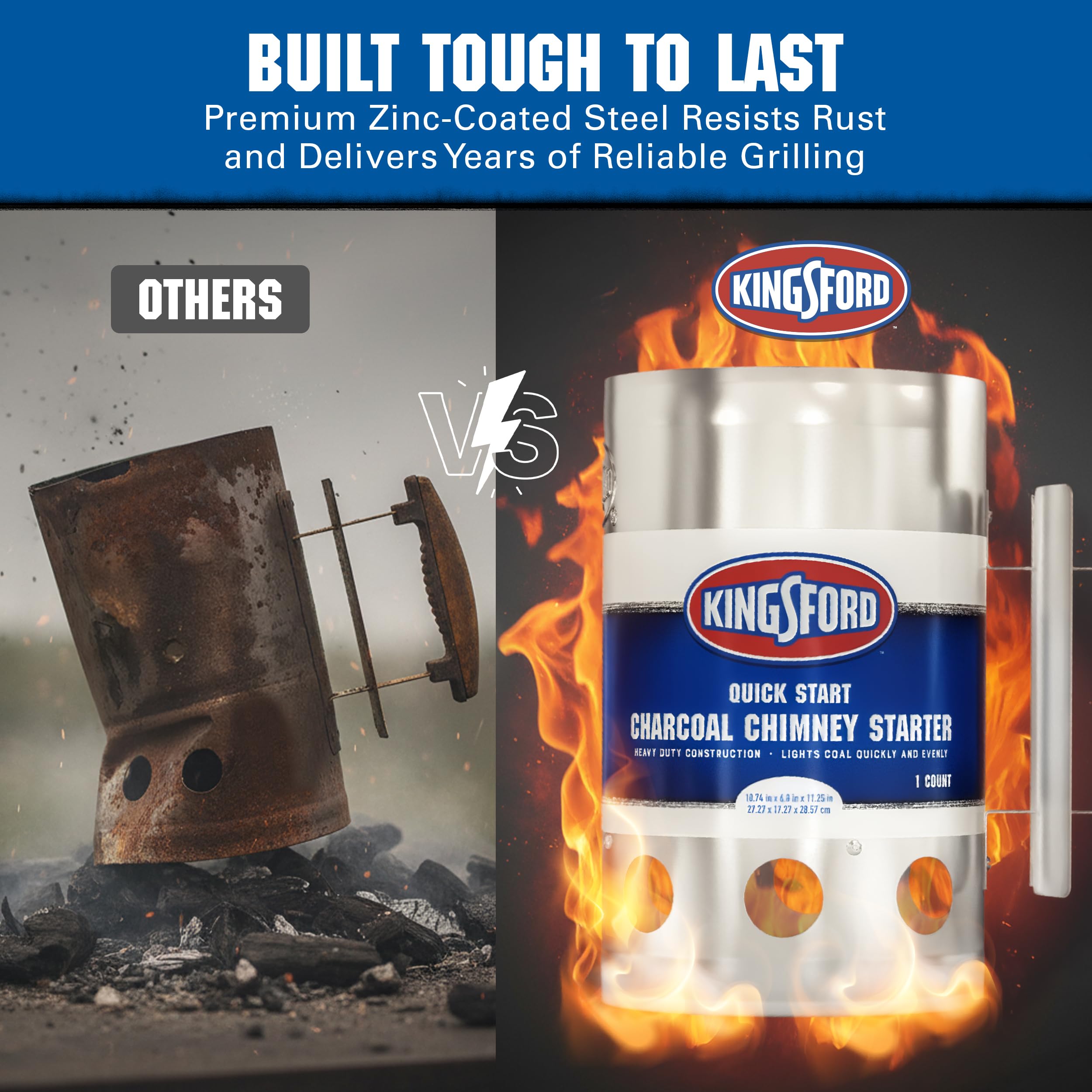 Heavy duty construction — This BBQ chimney charcoal starter is made with durable, rust-resistant zinc steel. Kingsford Coal chimney starter will be by your side, barbecue after barbecue
