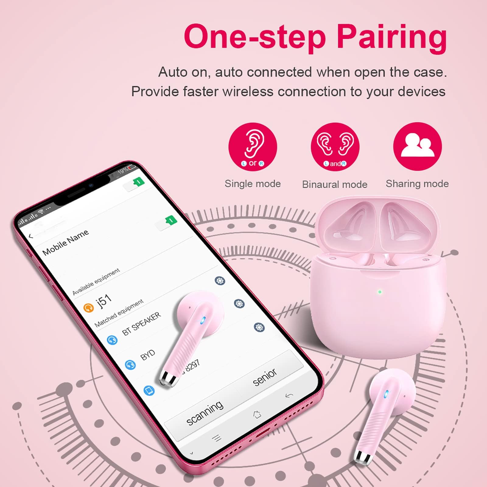Bluetooth 5.3, effortless pairing: the advanced Bluetooth 5.3 technology delivers a stable, low-latency wireless connection for high-quality sound(music or call). Also, the Bluetooth earbuds can connect automatically to the Bluetooth of your mobile phone when you open the charging box, avoiding complicated operations and saving waiting time.