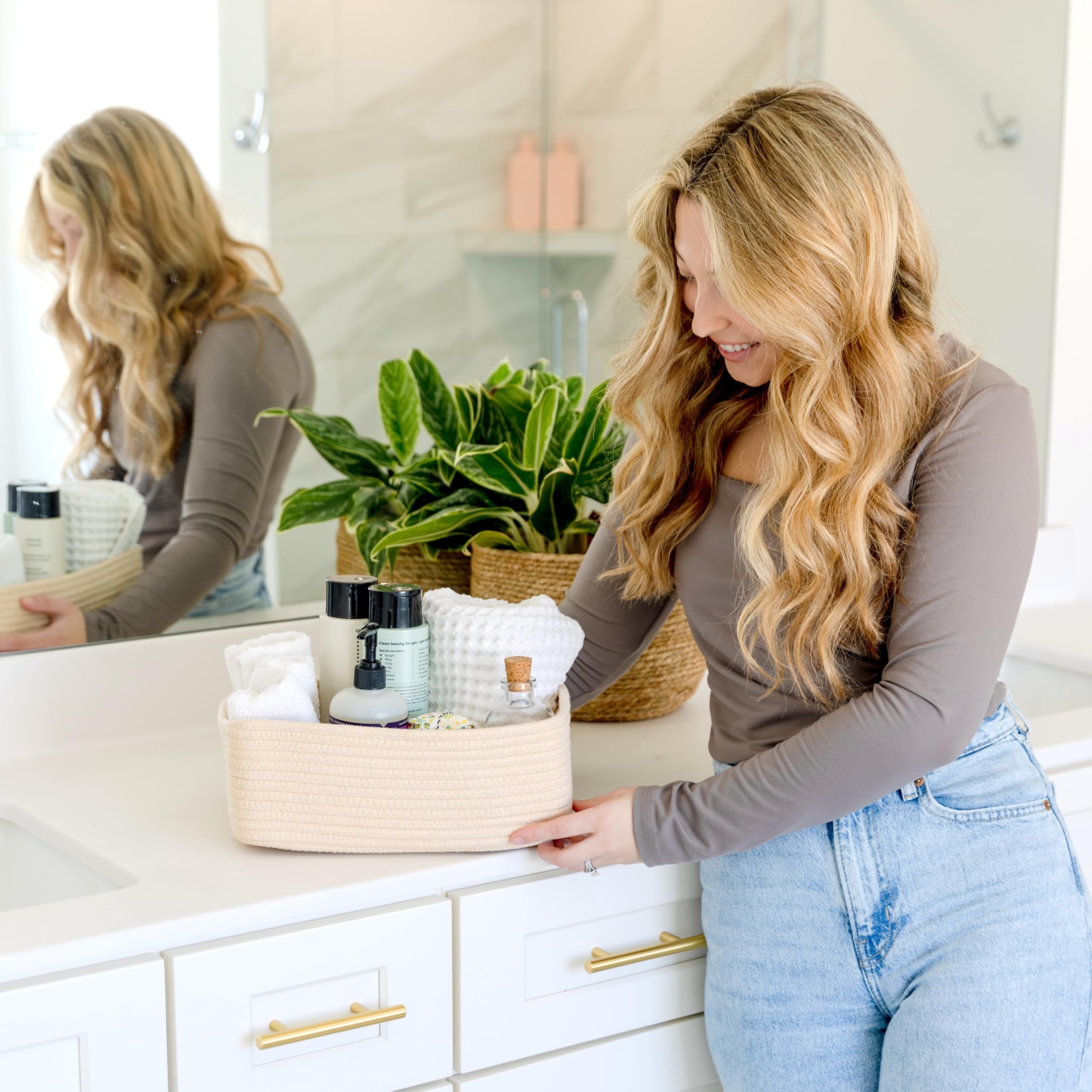 Safe, Natural Cotton Organizer Bins: Crafted from the highest quality material in the market, our storage bins are oh-so-sturdy (and cute) and ready to take on little humans. They’re 100% safe, so you can rest easy if teething toddlers take a nibble. Reinforced Hidden Handles: Now you see ‘em, now you don’t! With completely hidden handles that blend seamlessly into the rope basket, you’ll be the Houdini of home organizing. They’re even double-stitched and reinforced for extra heavy loads!
