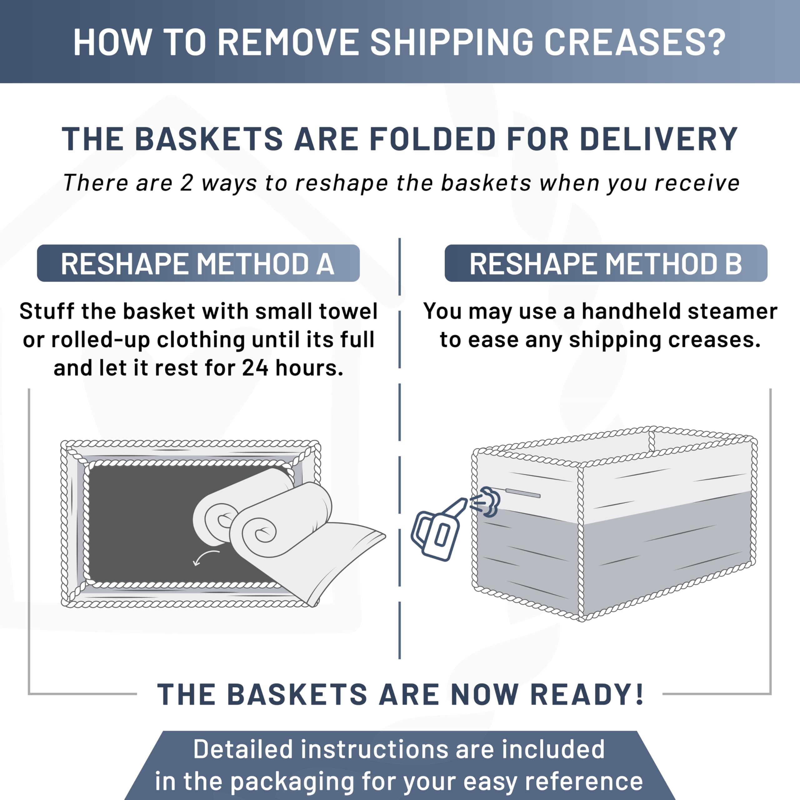 Say Goodbye to Wrinkly Floppy Woven Baskets: No more dealing with permanently creased, flimsy storage basket, unlike others our rope basket stays firm and structured. With our unique folding method and quality rope, shaping is easy with our instructions!