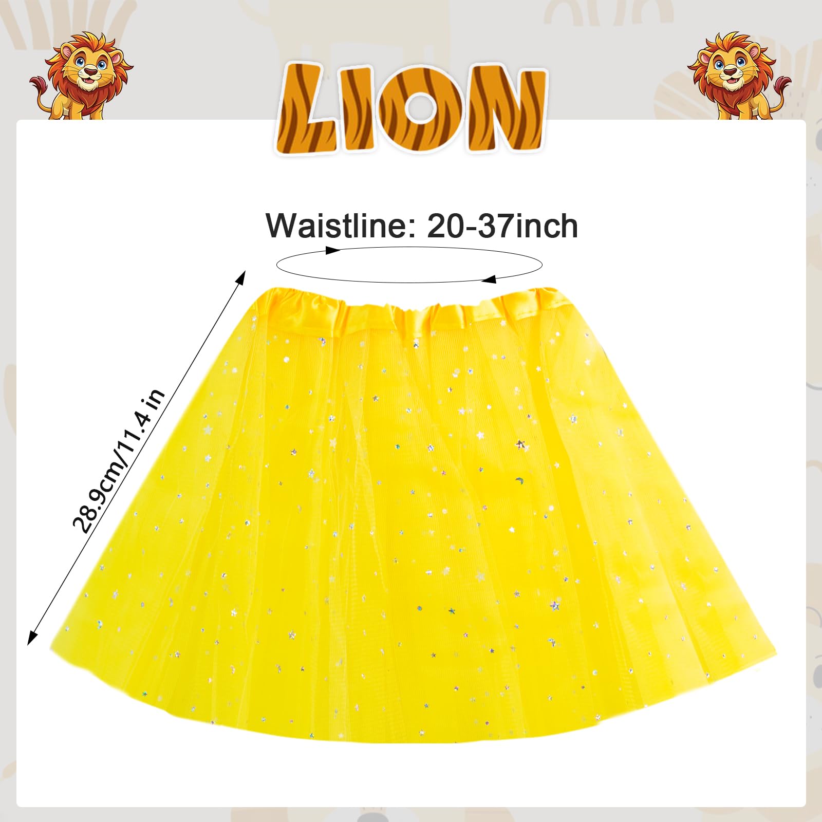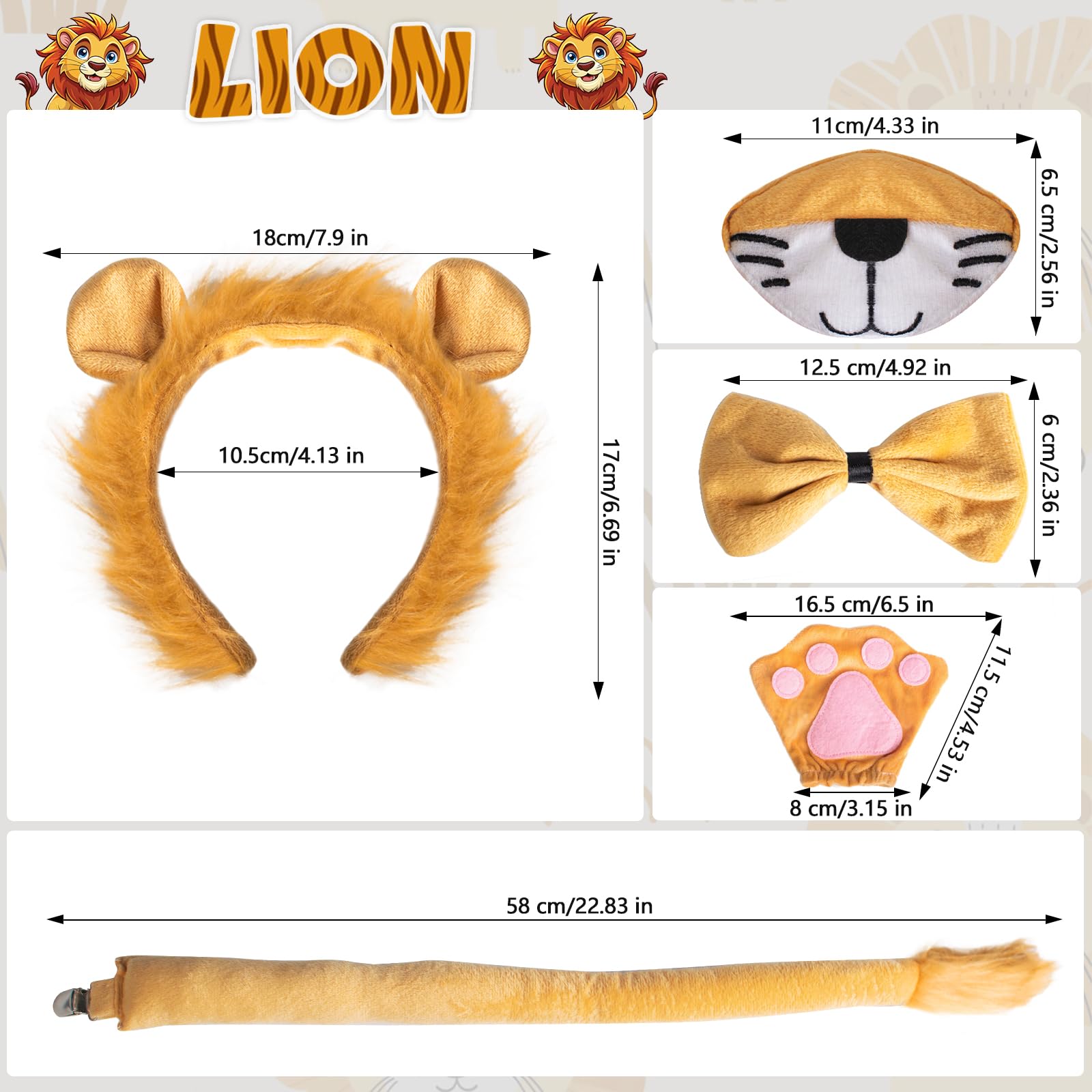 Suitable Size For You: headband 7.9 inches, Bow collar clip 4.92 inches ,nose mask 4.33 inches,gloves 6.5 inches,tail 22.83 inches, fluffy skirt length about 11.4 inches, waist 20-37inches, tail with elastic snap closure for easy on and off, not easy to fall off during activities. Our lion dress set is suitable for children and some adults to wear