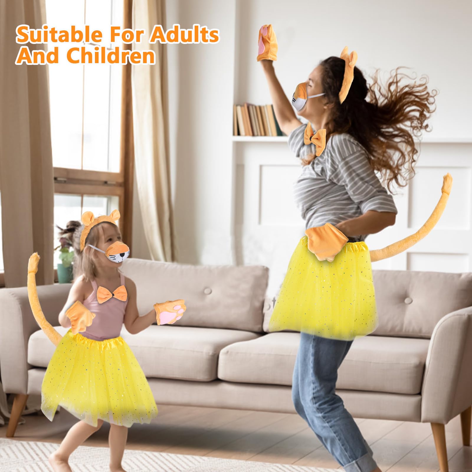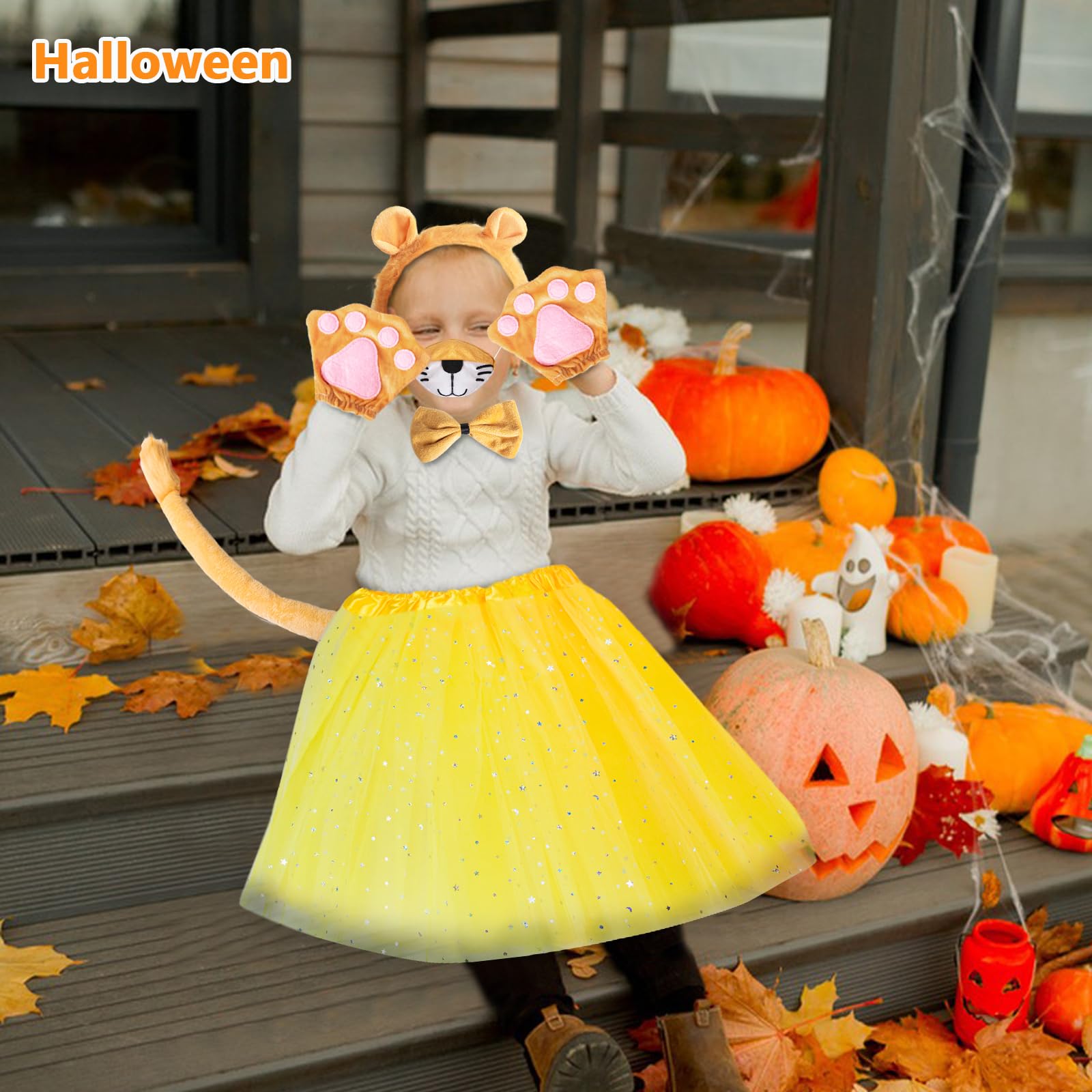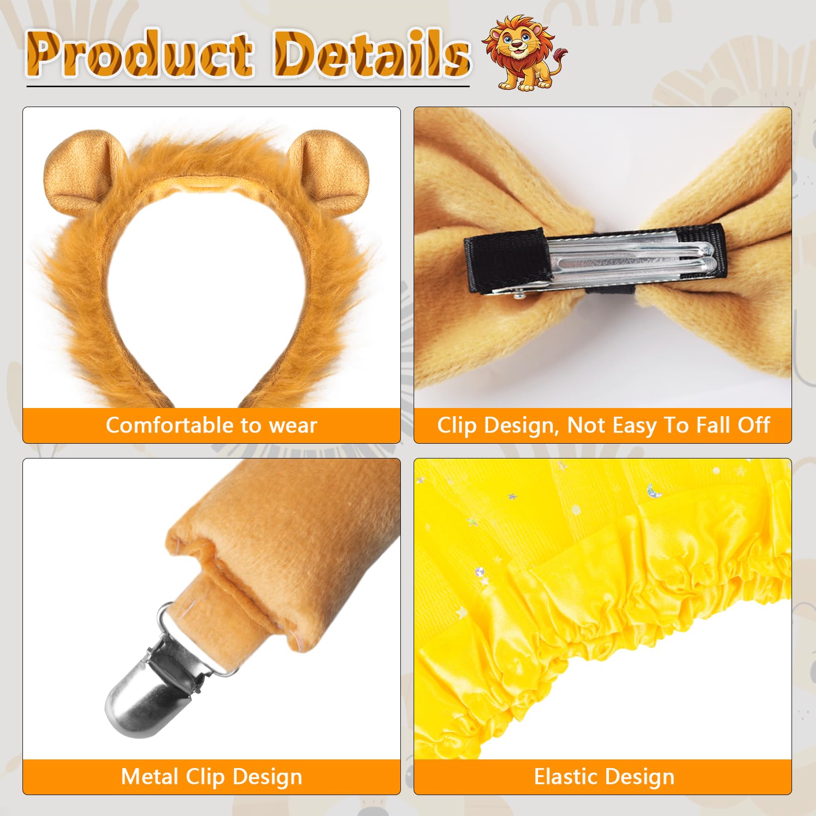 What You Can Get: 1x headband, 1x nose cover, 1x bow tie, 2x gloves, 1x puffy skirt, 1x tail, cute and charming lion costume accessories for easy control,Don't hesitate, buy it and wear it to have an unforgettable party with your friends and family