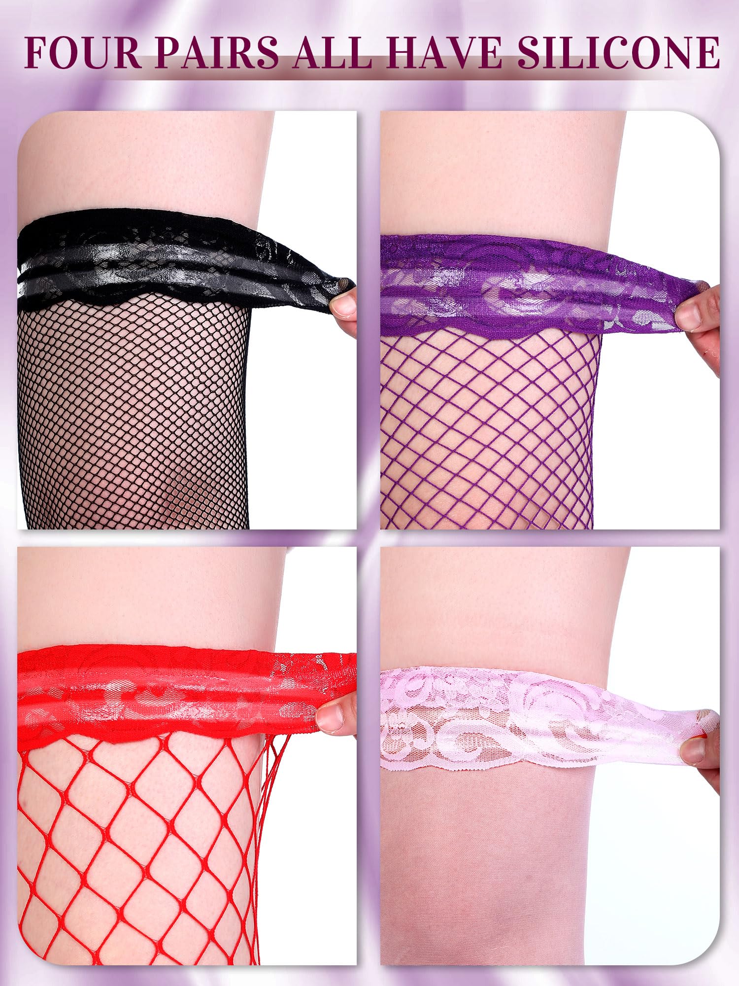 Meet Your Needs: the package comes with 4 pairs of thigh high stockings, providing your closet with stylish style, enough quantity and classic design for daily wear or replacement, you can choose the proper style according to your preference or dressing style