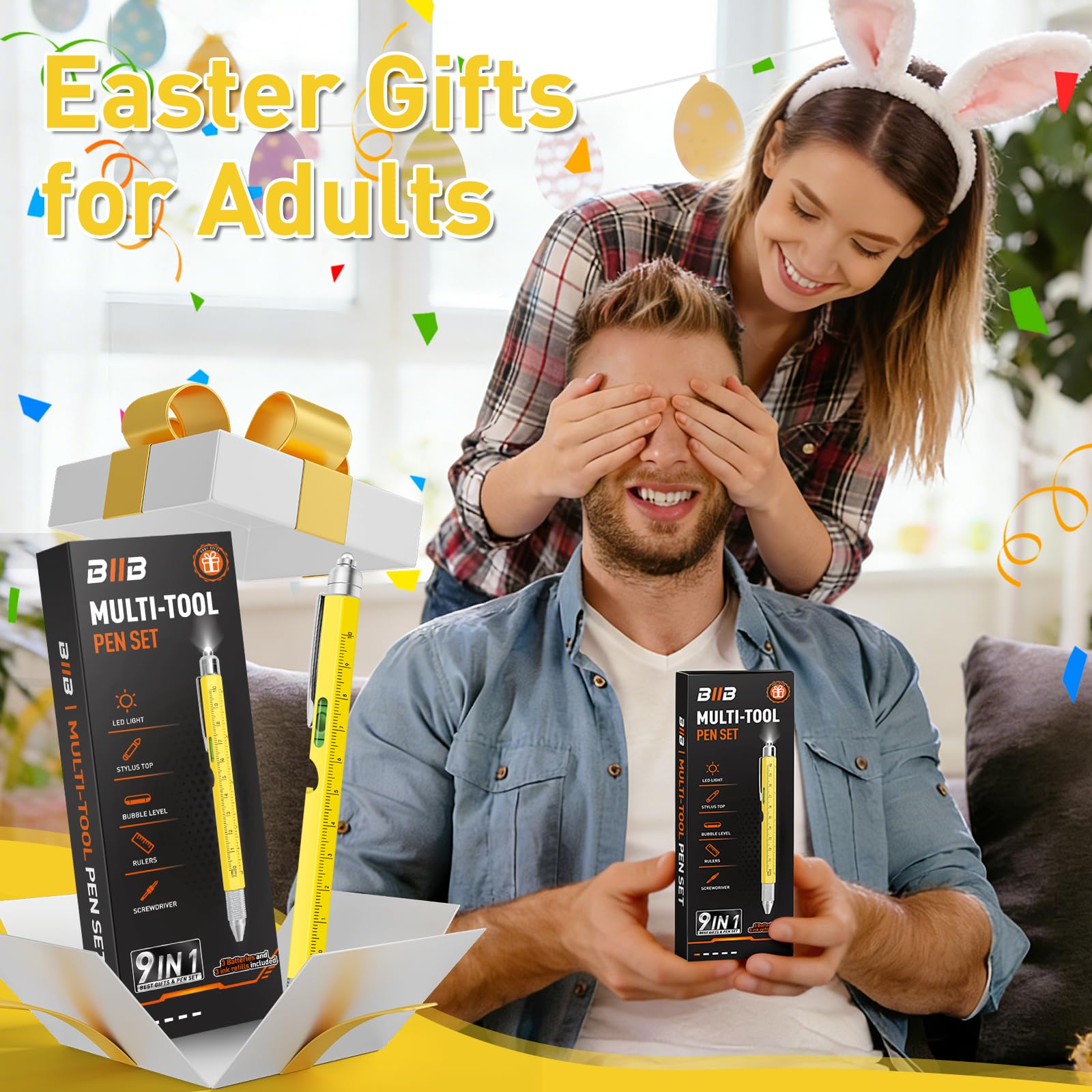 Easter Baskets for Adults: The packaging of this 9-in-1 multitool pen is exquisite, and comes with three extra replacement refills and three replacement batteries, very suitable as a gift for your loved one on Fathers Day and daily life