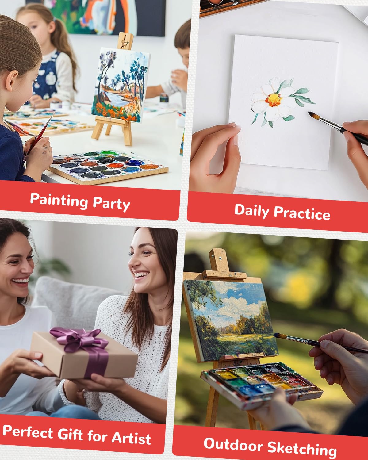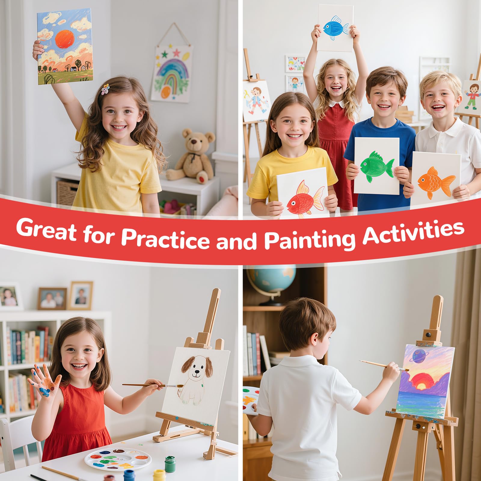 【Versatile Use】These art canvas boards are suitable for oil painting, watercolors, acrylics, tempera, pouring, gouache, and more. They're perfect for various occasions such as classroom instruction, art gatherings, home decorations, birthday parties, and community events, making them a versatile addition to any artist's toolkit