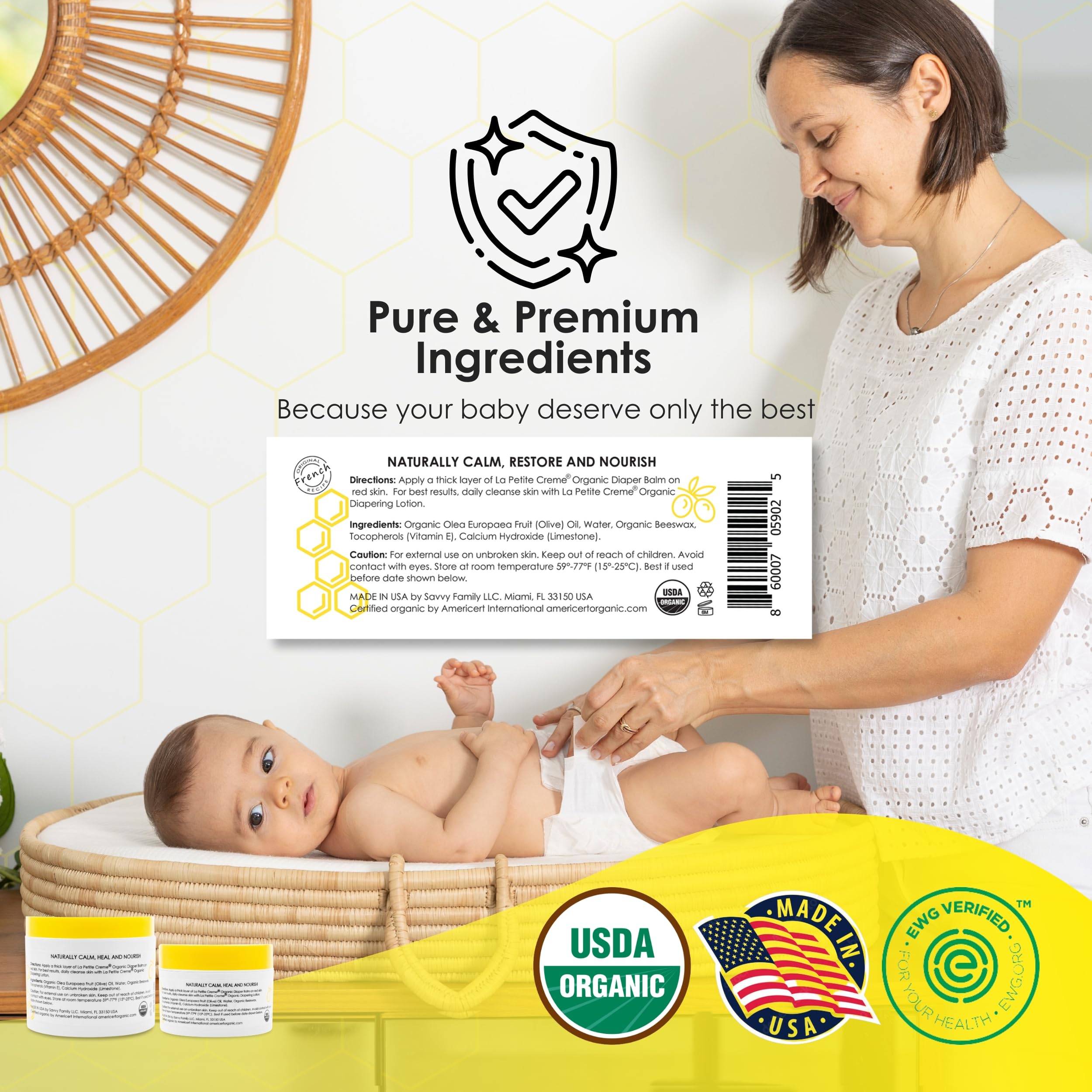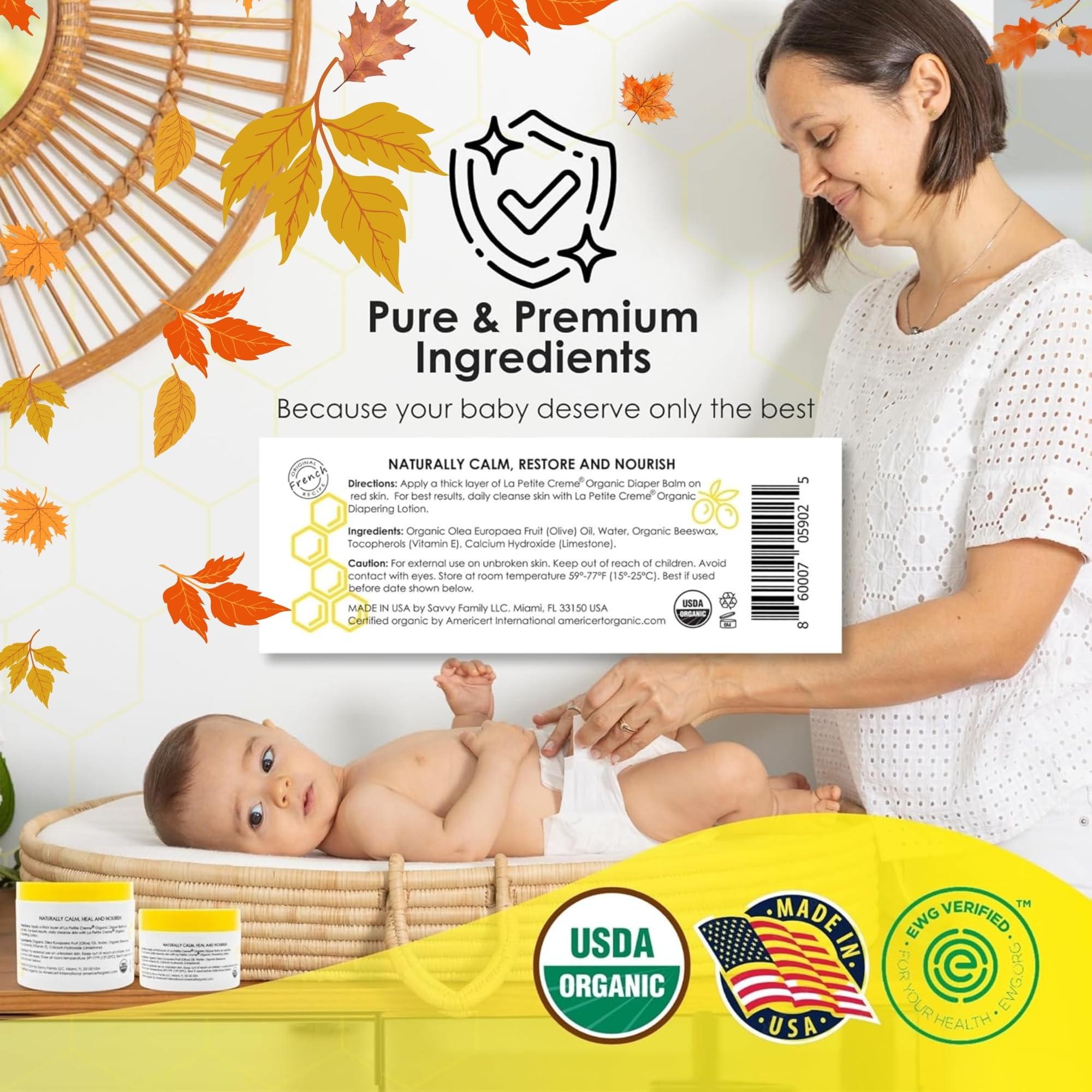 USDA Organic Certified and EWG Verified: La Petite Creme's diaper rash cream for baby meets both EWG's and USDA's strictest standards for health and transparency. We utilize only the safest and healthiest ingredients in our baby care products, giving you peace of mind that our baby essential creams are free from recognized harmful chemicals.