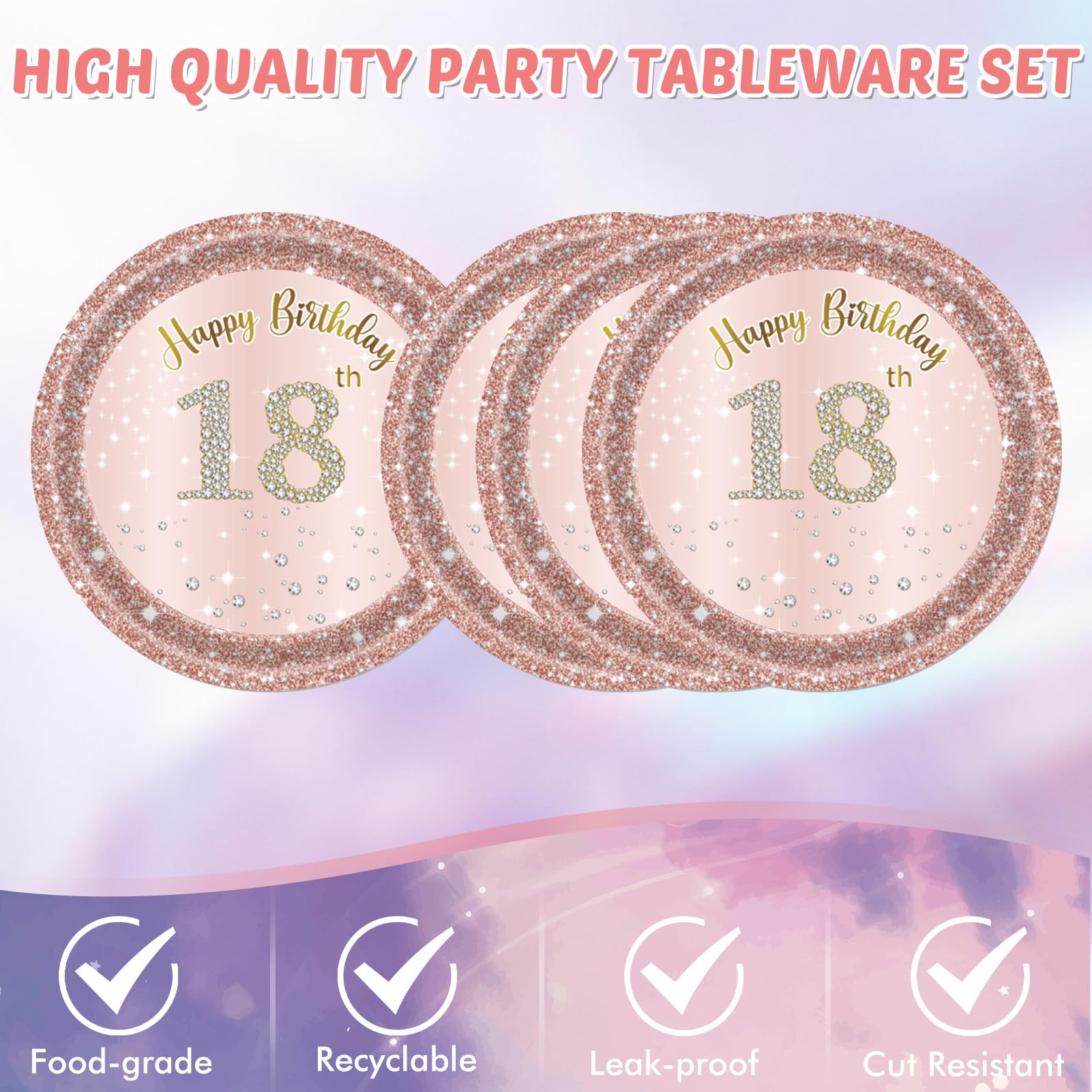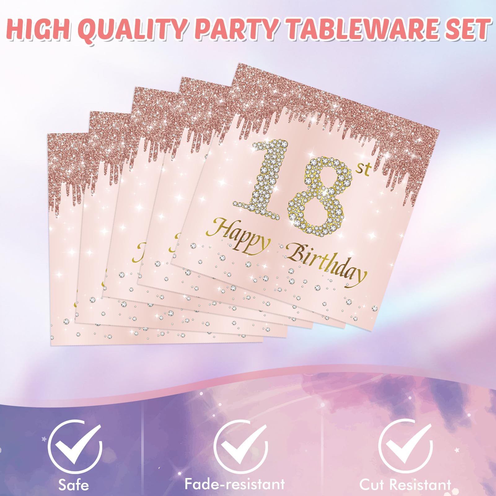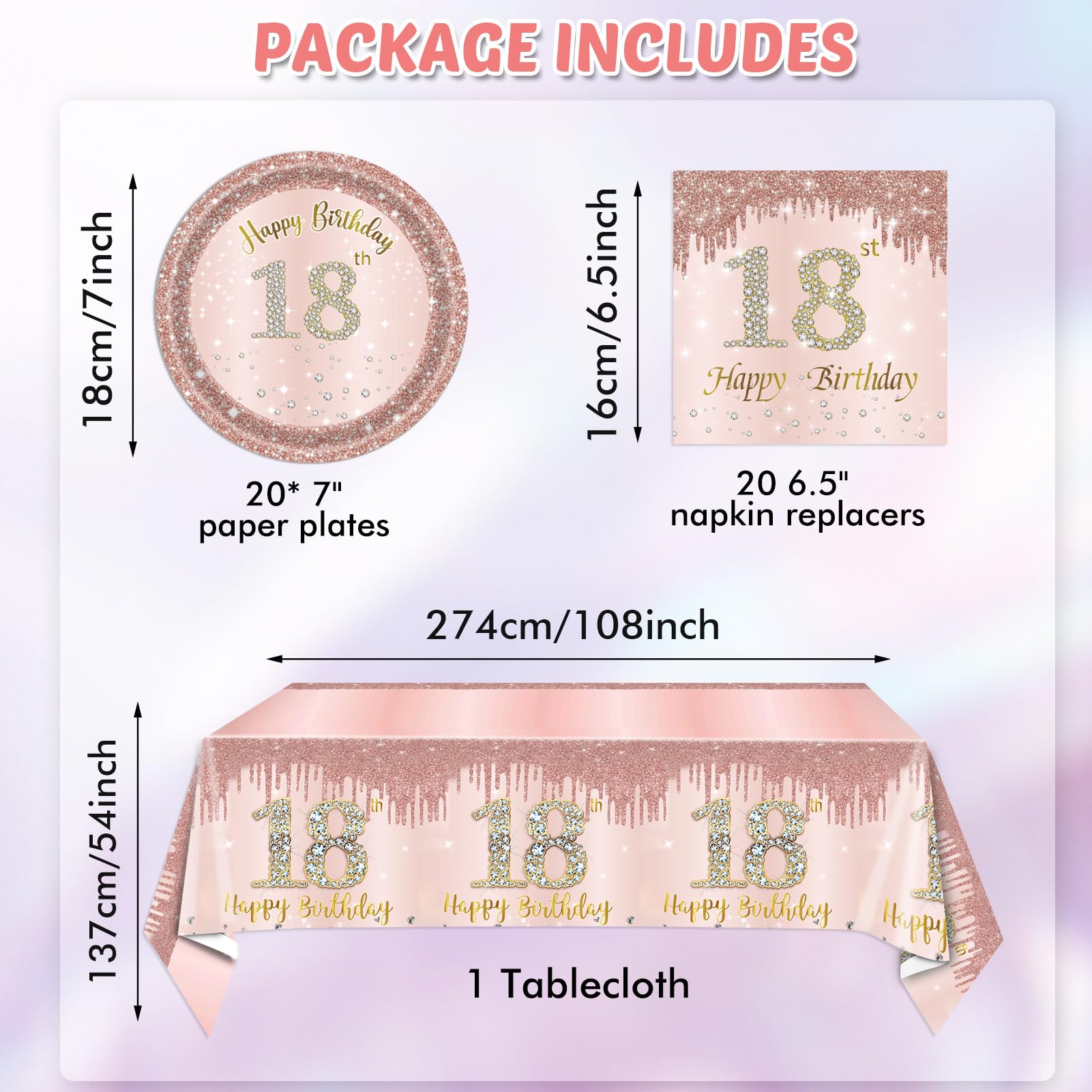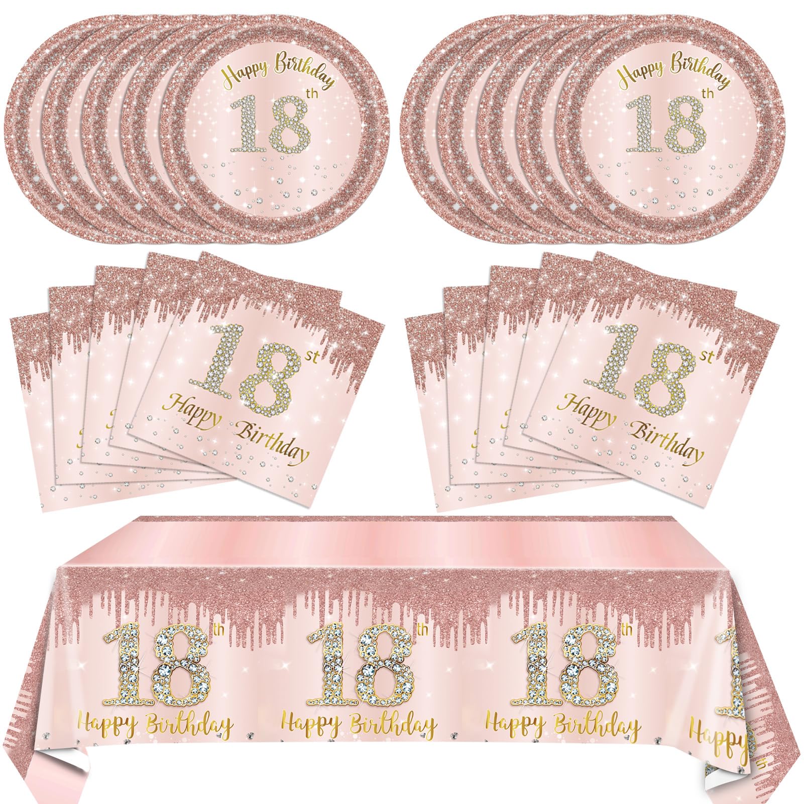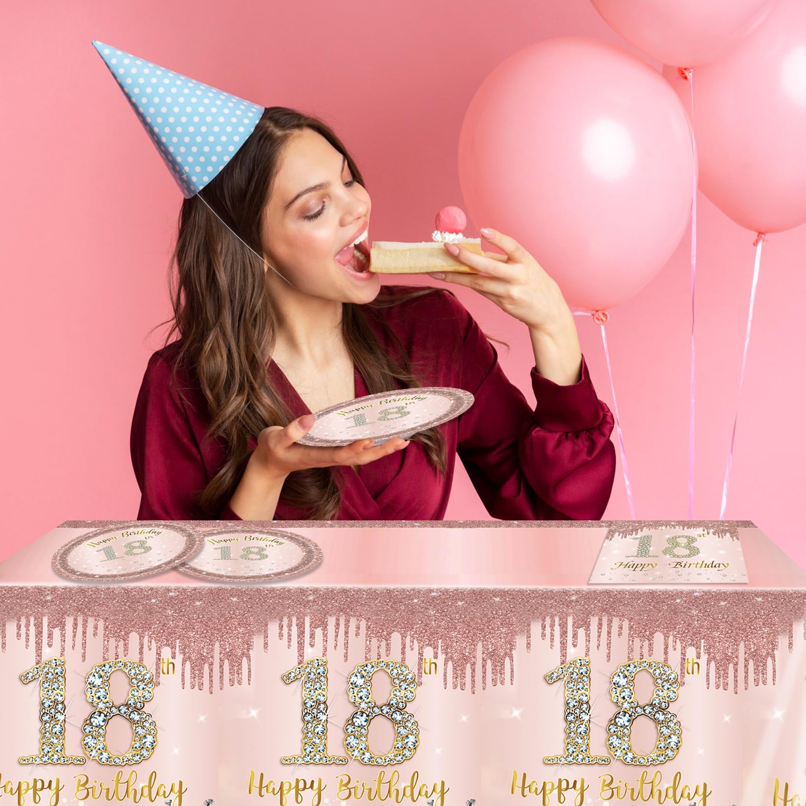 Birthday Decorations: Rose Gold 18th Birthday Decorations includes 20 18th birthday plates, 20 18th birthday napkins and a 18th birthday tablecloth. With 18th birthday party supplies, your party will be unique and impress your guests.
