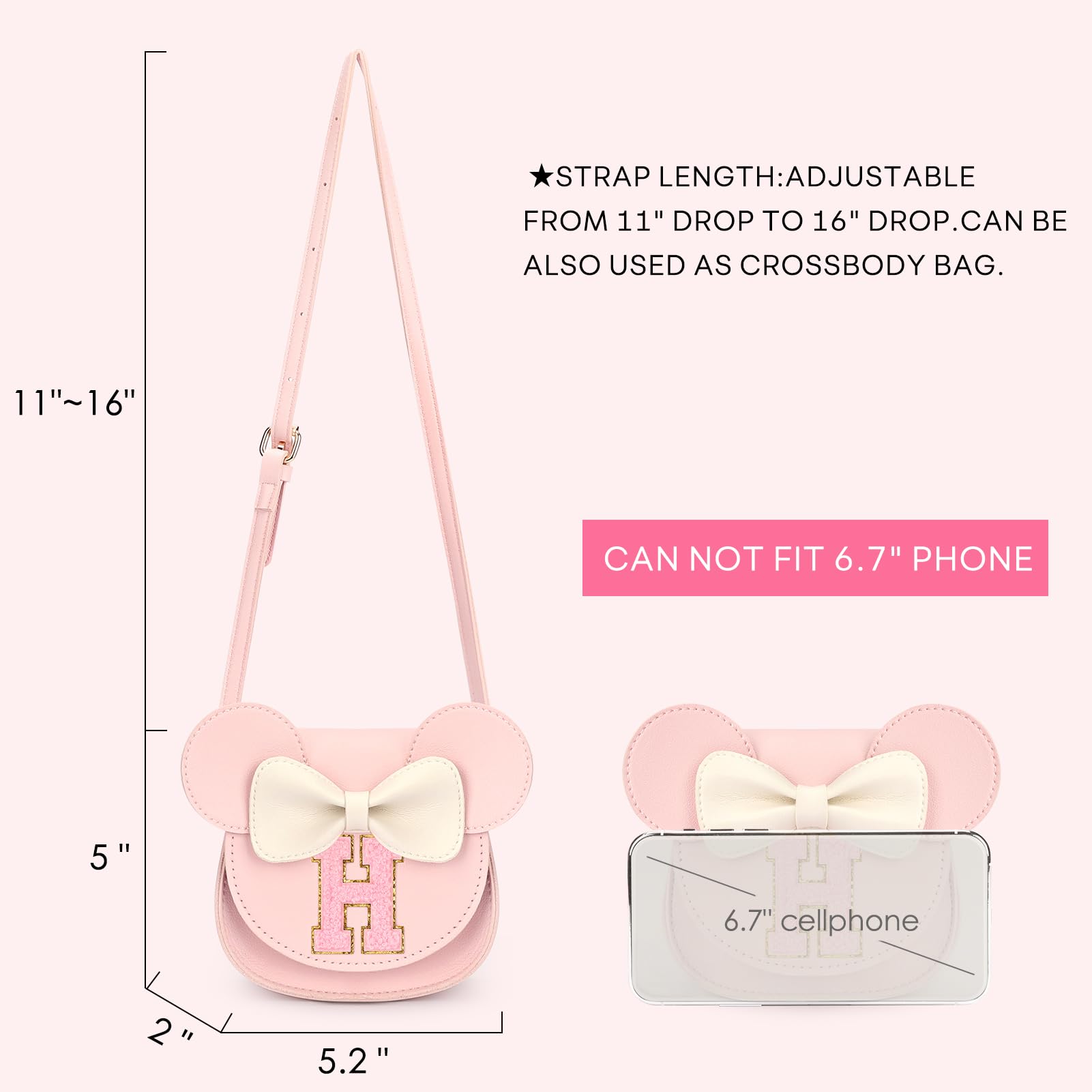 Cute Shape: Patched with a letter,This little girl purse would be a personalized birthday gifts for 6 year old girls or under. Kids would love its mouse ears and bow. Tip: Please select the letter you want in the STYLE