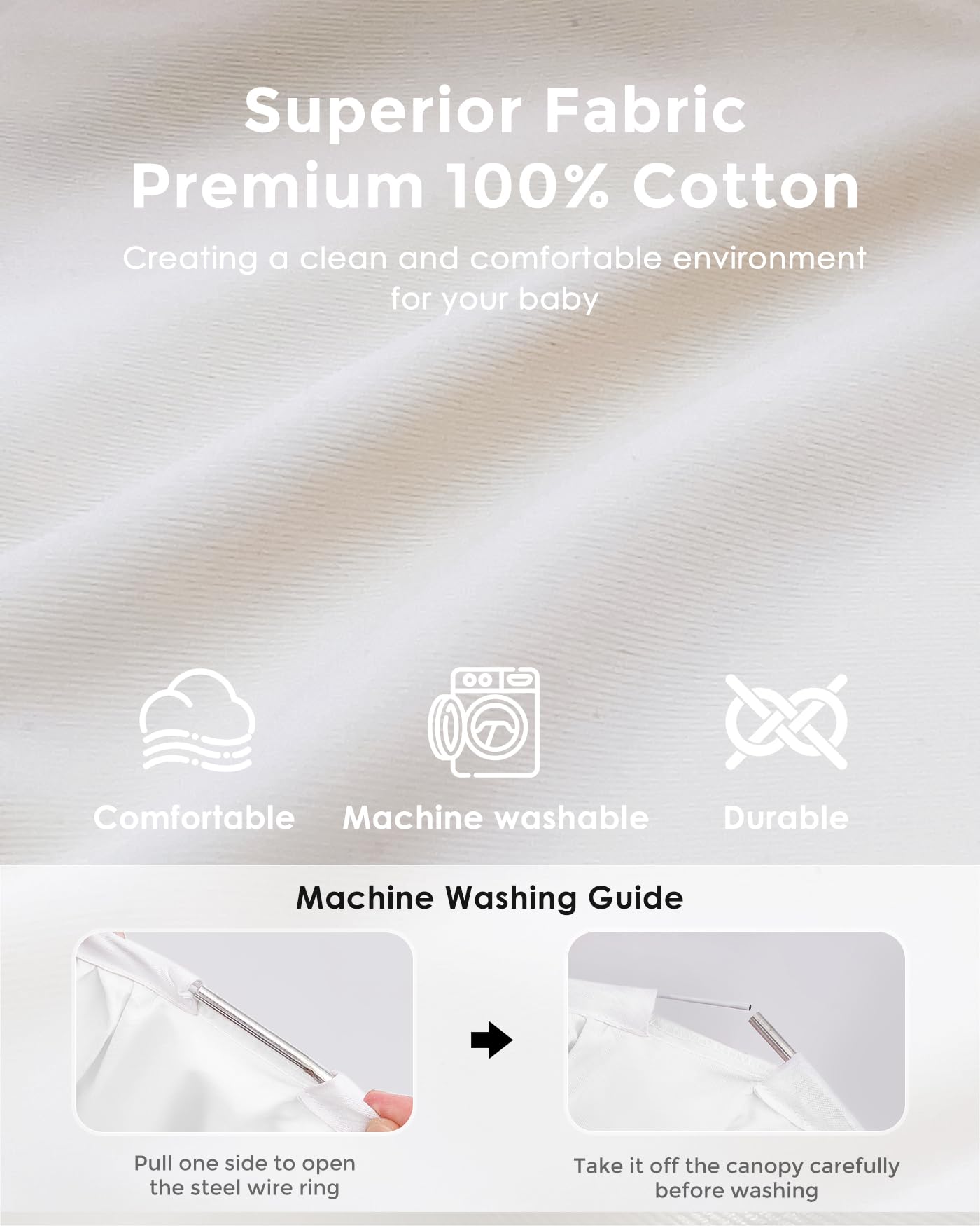 EASY TO CLEAN & ASSEMBLE: Cleaning is a breeze with our machine-washable canopy bed curtain. After removing the steel wire, the bed curtain can be easily washed in the washing machine. No assembly skills required, setting up this bed tent is hassle-free with our included suspension kits and user-friendly instructions.