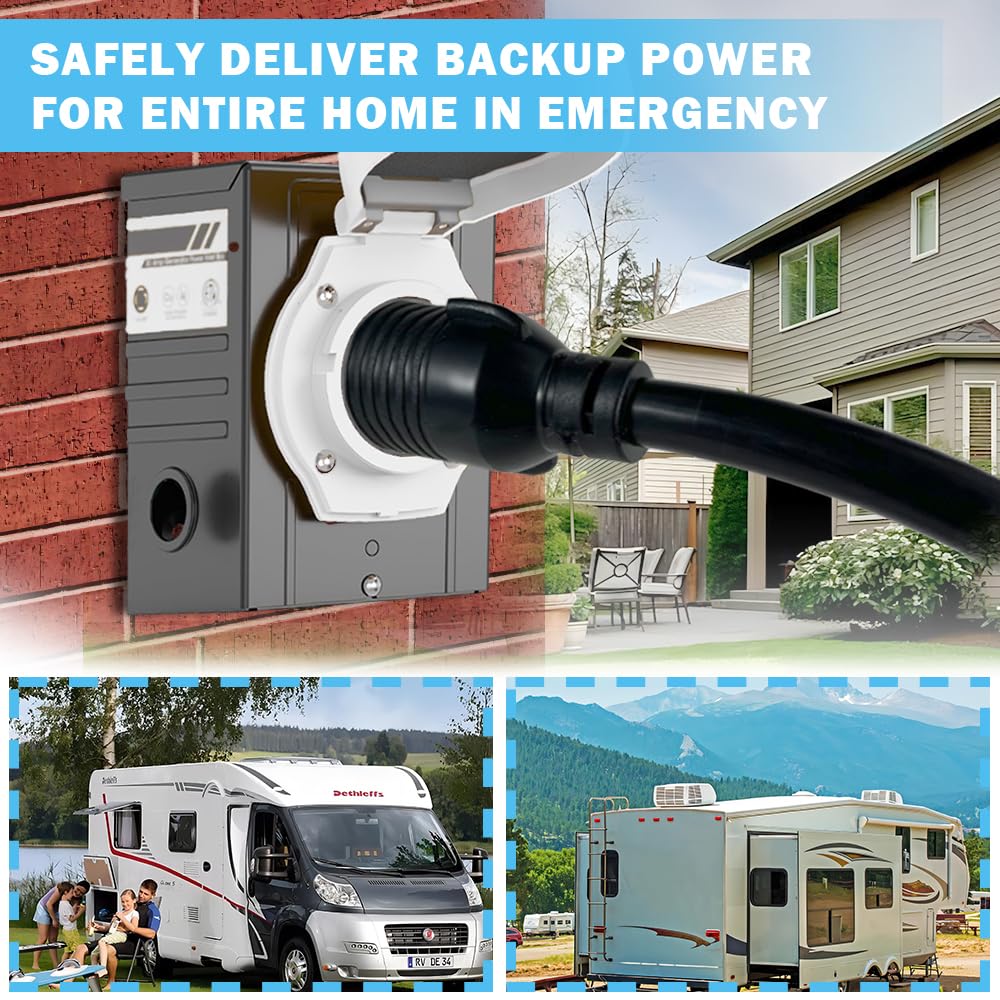 A)RV adapter cord has cable, heavy-duty molded plug, copper wire coating, heavy-duty flame retardant, UV resistant, STW indoor/outdoor waterproof jacket, which provides good electrical conductivity. B)3ft cable is just the right length, not too long not too short. It's easy to organize, carry around, and store away. No more extra messy long cord. Watertight ring lock on SS2-50R end prevents water leakage even in heavy rain.