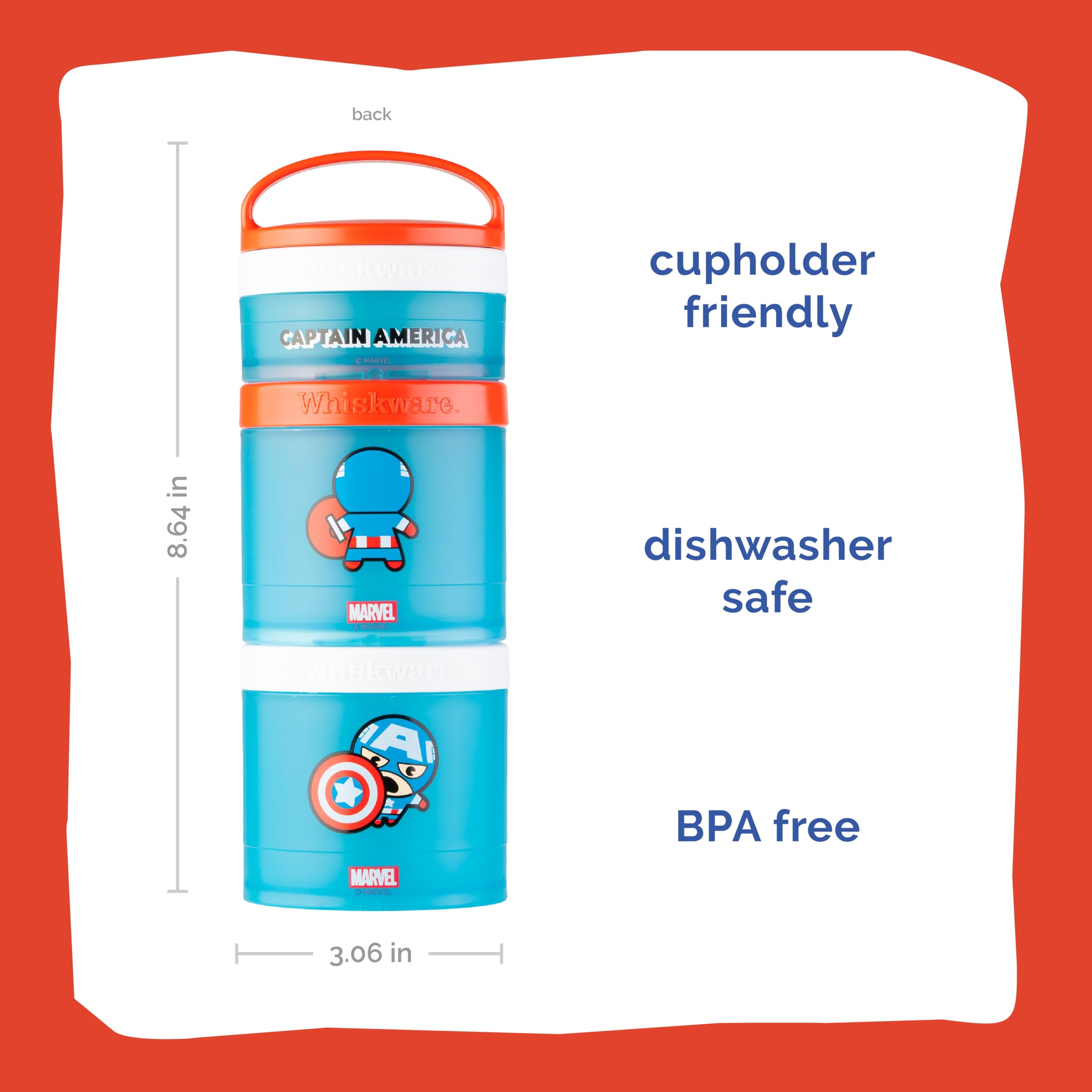 Here to turn snack time into playtime. Whiskware’s durable, low-mess snack jars have a Twist ‘n’ Lock™ system that not only lets you pack and go in a flash—but it also lets you mix and match all your favorite characters! Designed for little hands to hold, our snacking containers fit in cupholders, diaper bags, backpacks and more—making them an awesome food storage choice for daycare, school, and on-the-go airplane or car travel. But most of all, because we care about safety and convenience, Whiskware snacking containers are BPA free and dishwasher safe for worry-free use and cleaning. So if you want healthy snacking to be simple (and loads of fun), don’t miss these containers!