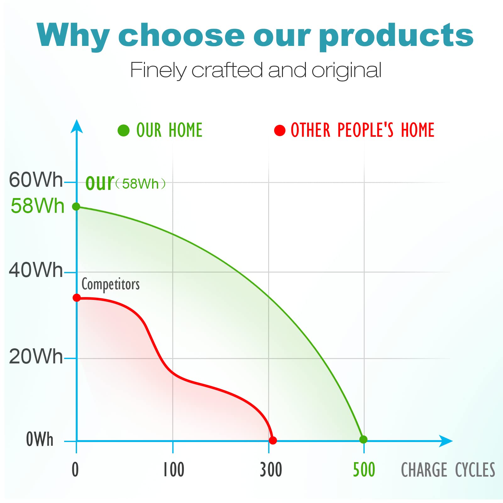 Security & Reliability: Our batteries are assembled from top quality material and circuit boards to ensure fast charges and low power consumption, 100% New from Manufacturer, Overcharge and Overdischarge Circuit Protection, Over-temperature and Short-circuit Protection, up to 500 recharge cycles over the life of the battery, meet OEM standard.