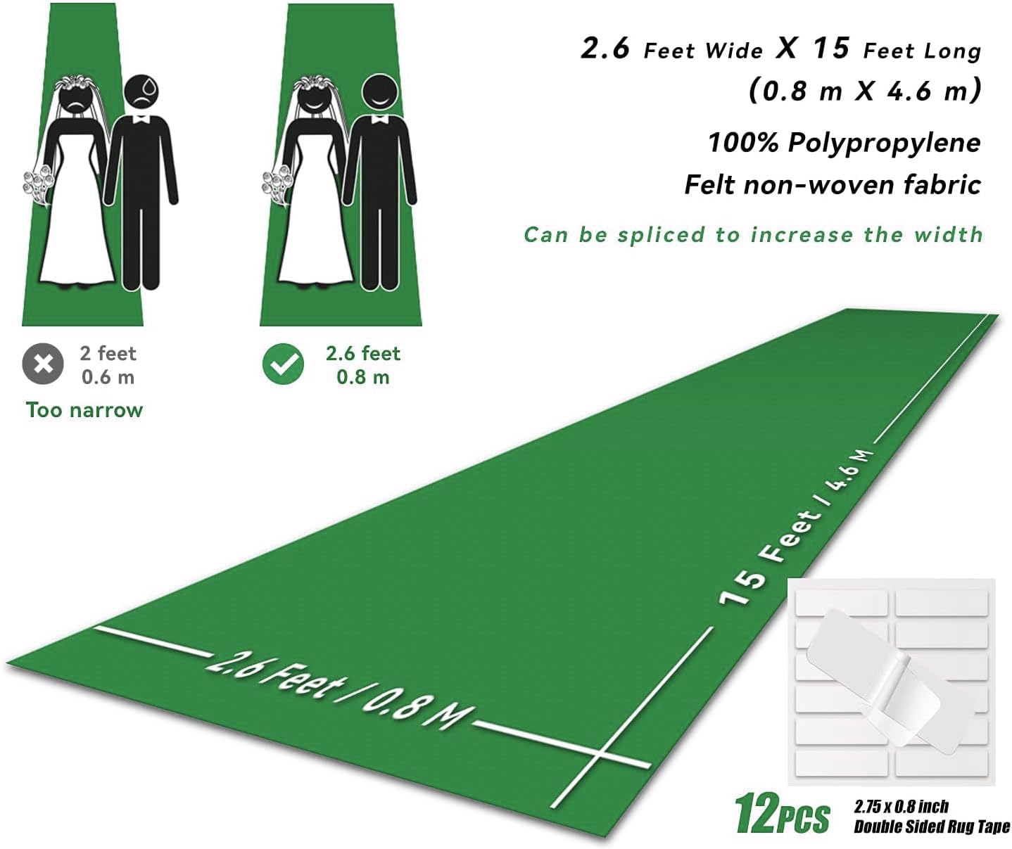 Spacious 2.6ft x 15ft Size for Gatherings: Designed with a practical 2.6ft (0.8m) width (vs. standard 2ft), this party carpet runner comfortably fits two adults walking side by side. At 15ft (4.57m) long, it blends seamlessly into your event site, accenting spaces without feeling too narrow—perfect for group photos or shared entrances