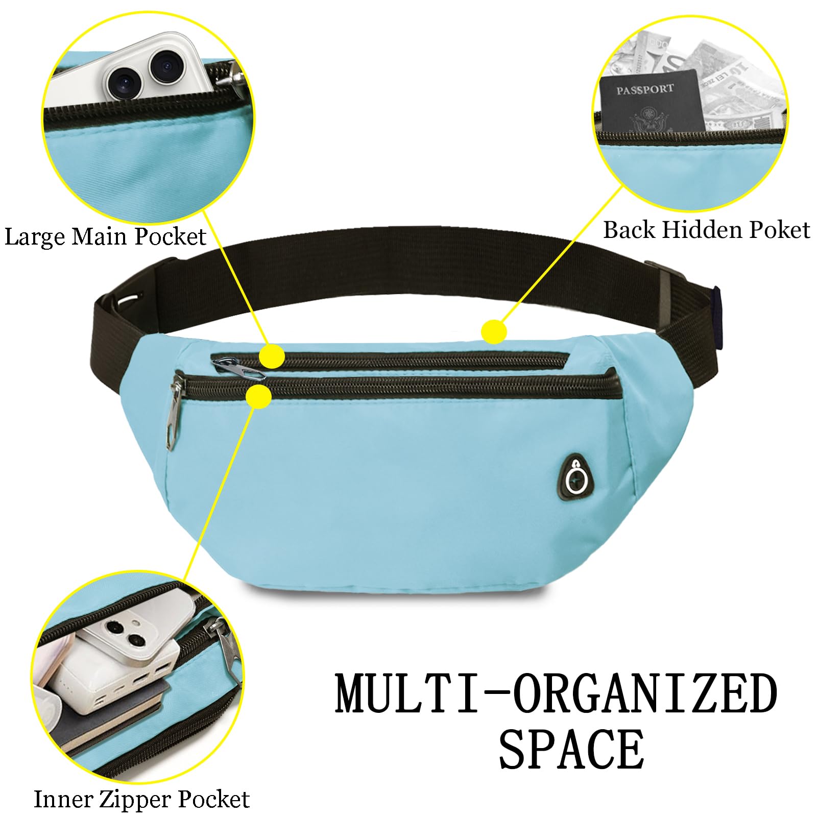 Durable Materials&Light Weight : Our fannie packs for women & men is made of high quality material which is water-resistant,durable and light-weight .Ensure a secure & long-lasting usage.