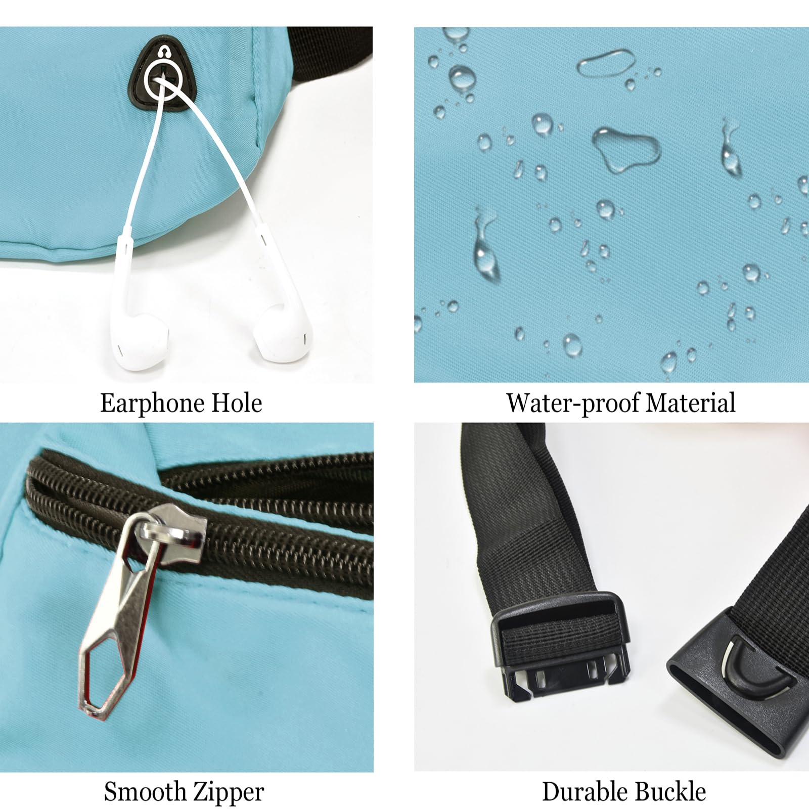 Notice:The fabric of fanny pack is water-resistant. Water can came in through the zipper line. Please do not put the whole fanny pack in water.