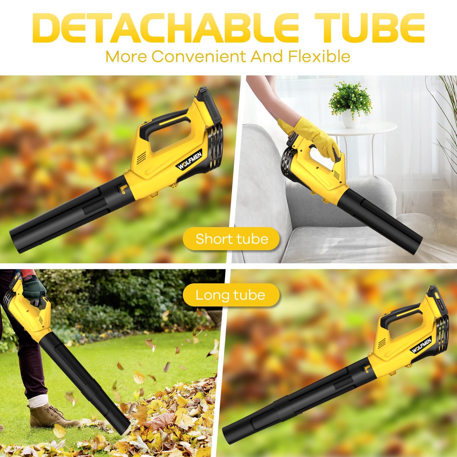 Adjustable Speed Mode: The WOLFMEN leaf blower is equipped with 2 different wind intensities, and you can find the appropriate gear to clean different areas according to different cleaning needs