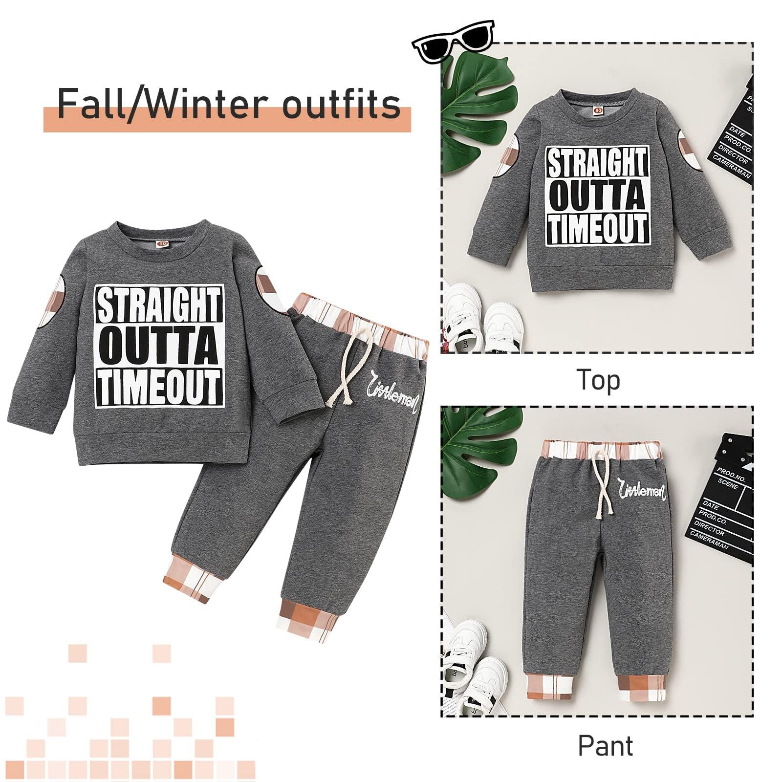 Boys Clothes Package Include: Toddler boy clothes include 1Pc baby boys long sleeve sweatshirt top + 1Pc baby boy sweatpant long pants