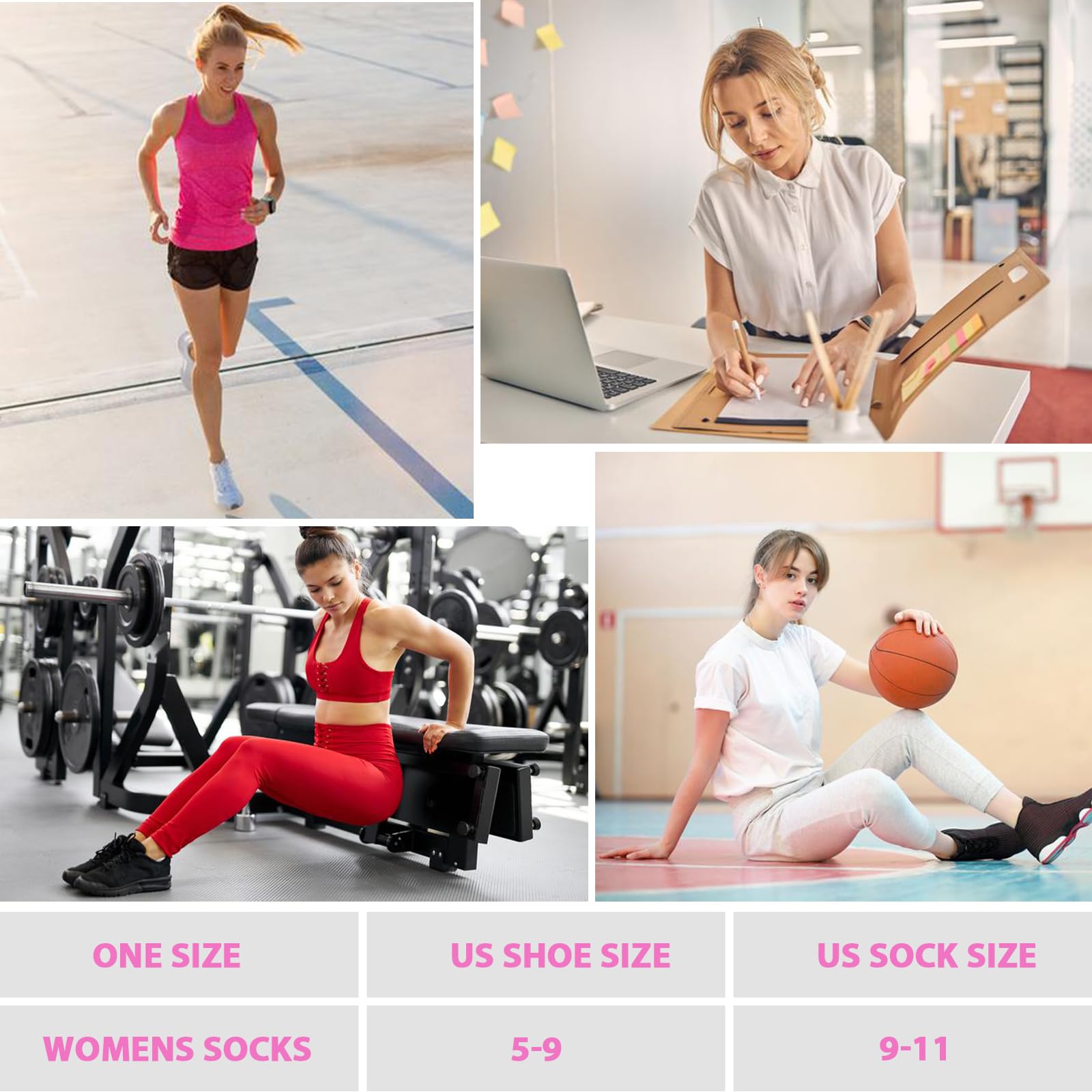 [COMFORT CUSHION SOCKS FOR WOMEN]:Our athletic socks women use soft cushion on bottom to provide waterproof blister protection, absorb shock and relieve foot pain. Whether you're running, walking, biking, working out, or just going about your daily activities, they provide extra support and cushioning to minimize impact.