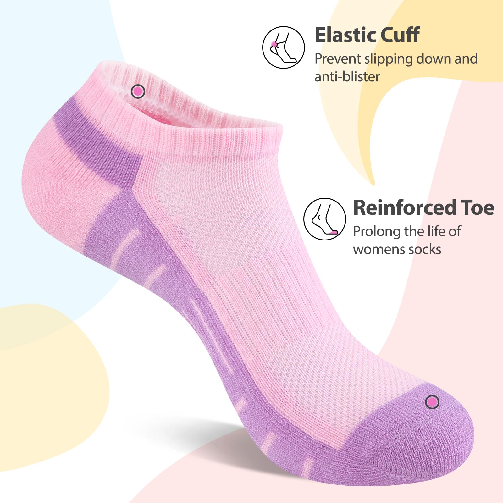 [REINFORCED HELL & TOE]:These womens low cut socks have reinforced toes and heels with cushioning inserts to increase durability in high-wear areas and reducing excessive friction with shoes. Extend the life of your womens socks and prevent holes in your socks.