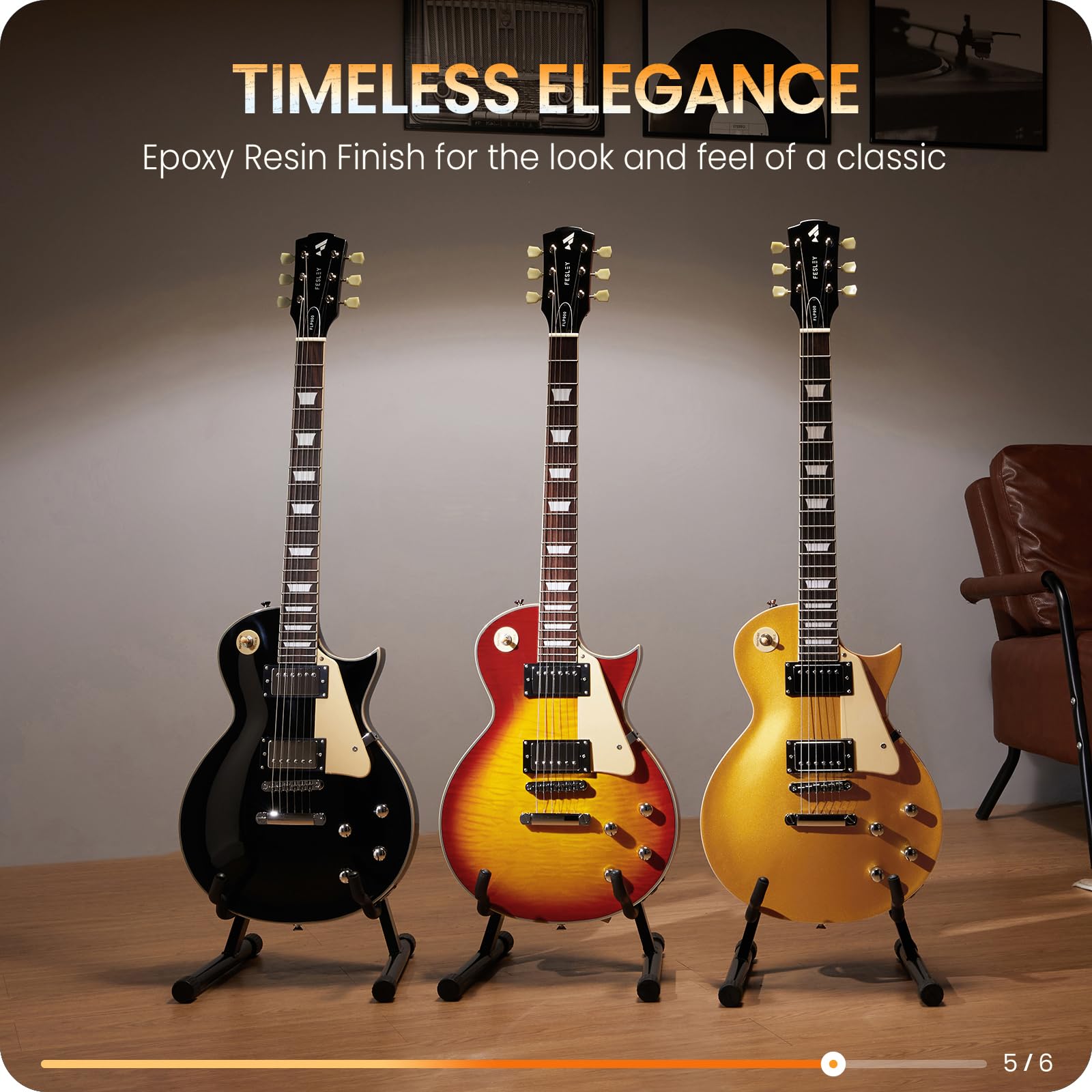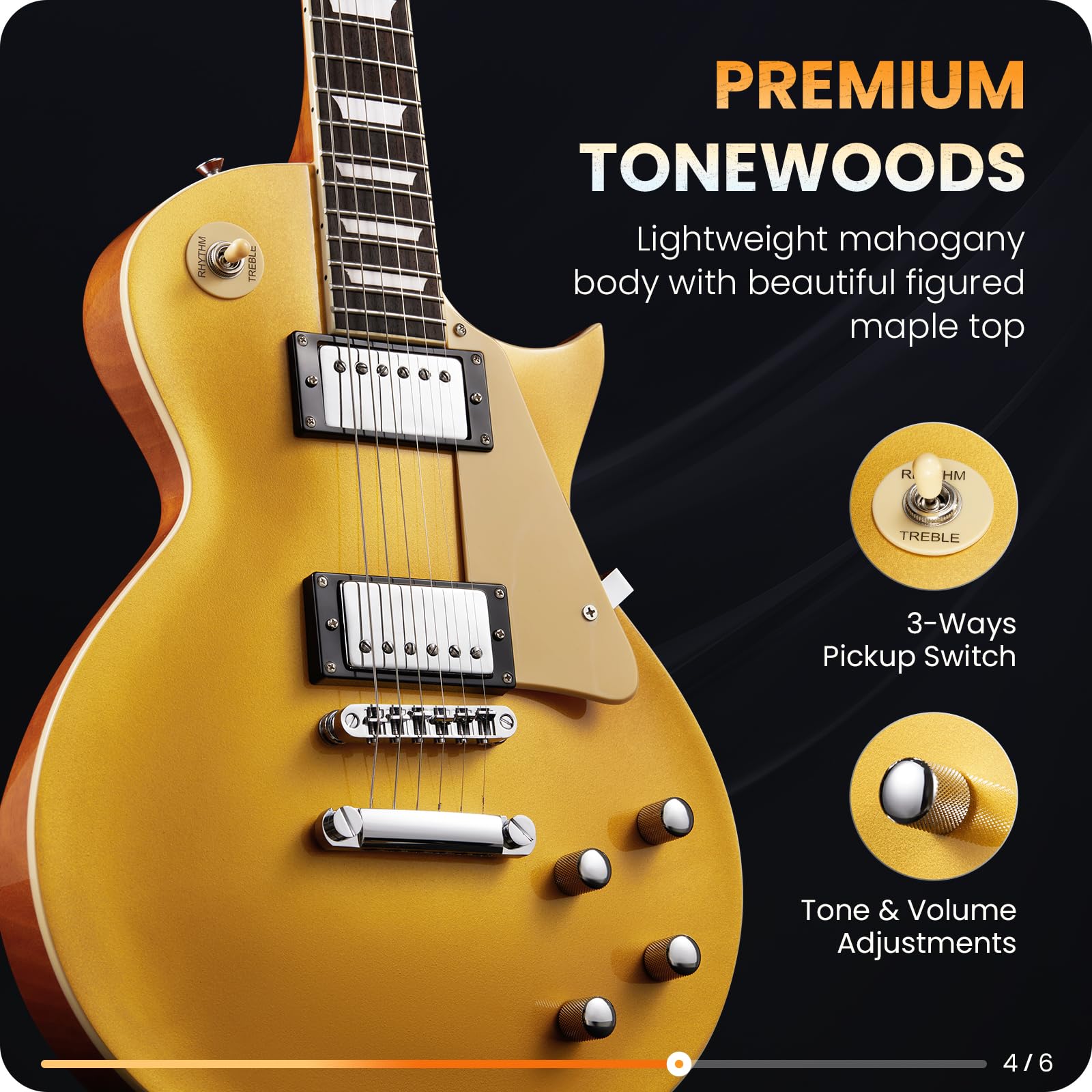 PREMIUM GUITAR ACCESSORIES: This electric guitar set includes everything you need to start playing immediately: an LP guitar, a gig bag, a guitar cable, a strap, a wrench, and a user manual. Ideal for musicians of all skill levels, this comprehensive kit ensures you have all the essentials to unleash your musical potential and elevate your playing experience!