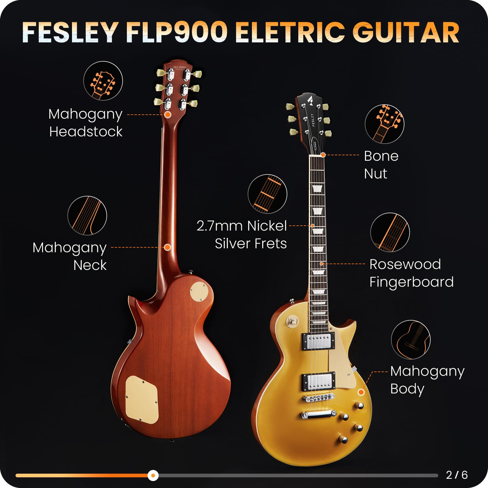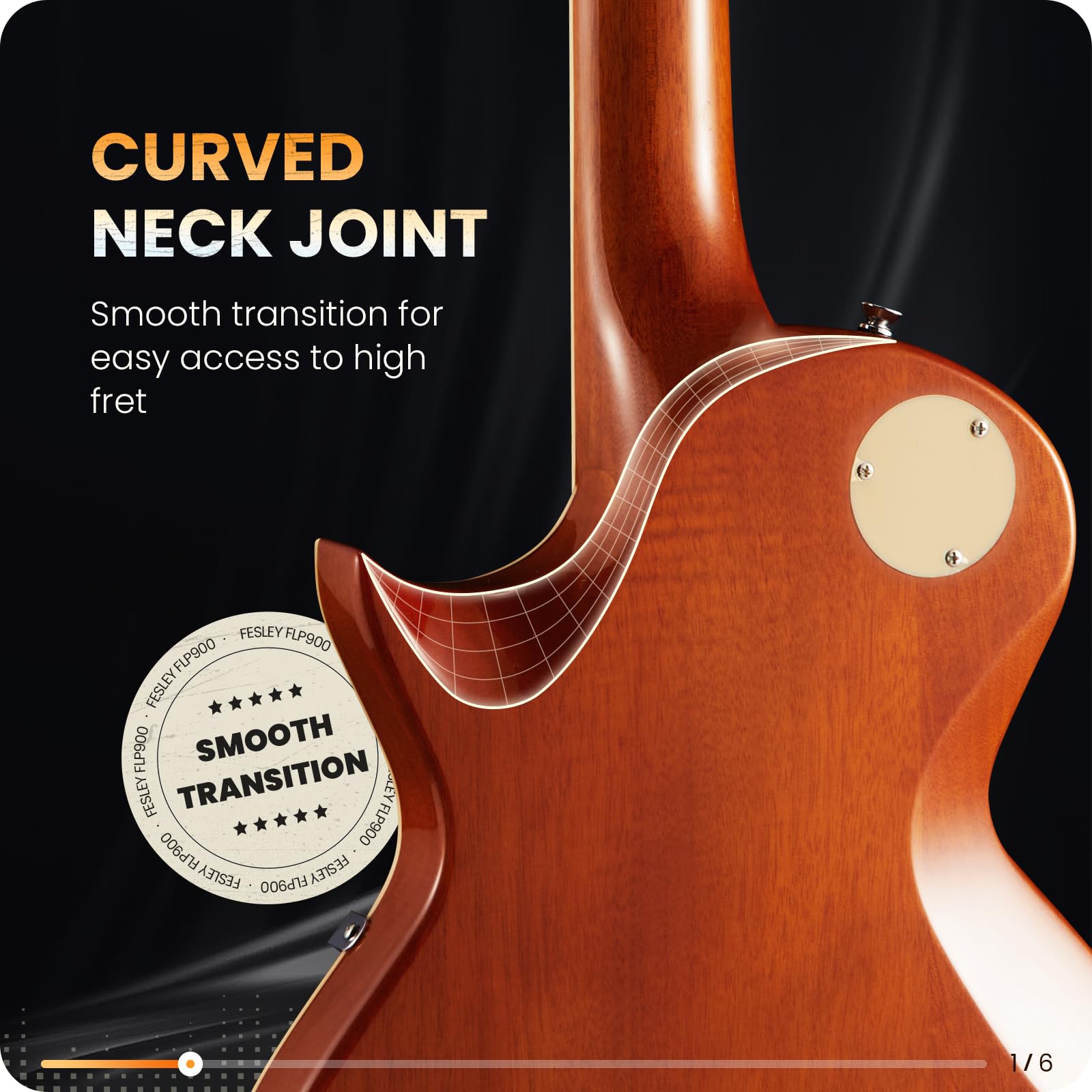 CAPTIVATE WITH AAAA MAPLE TOP AND MODERN WEIGHT RELIEF: The Fesley FL900 electric guitar stands out with its breathtaking AAA-figured maple top, showcasing a striking flame pattern. Its ultra-modern weight relief design reduces bulk while maintaining vibrant acoustic resonance. The slim, contoured mahogany body offers a comfortable fit, ensuring exceptional playability. With its stunning looks and lightweight feel, the guitar is perfect for both stage presence and effortless performance.