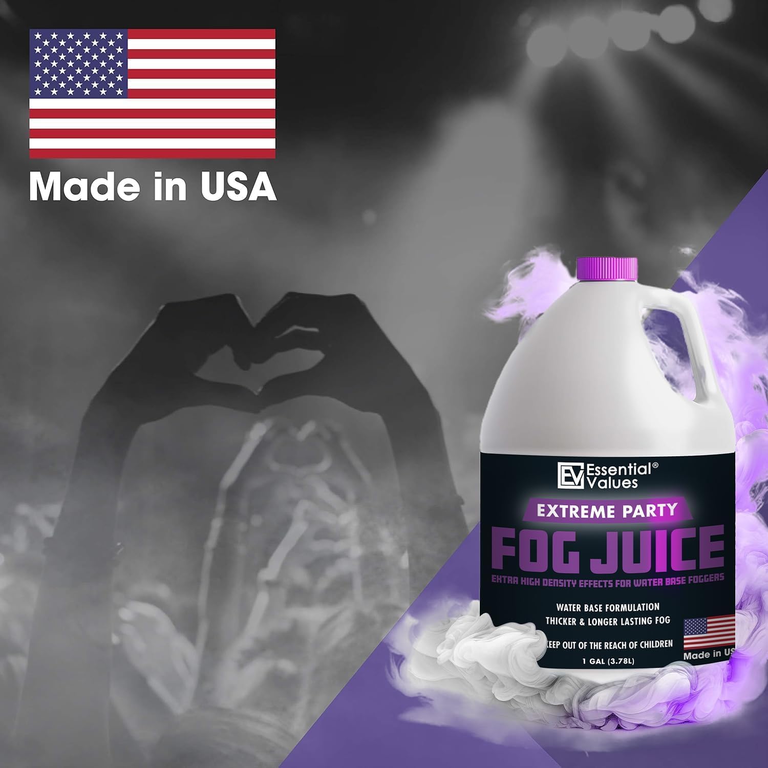 High density fog: Developed from food-grade USP certified ingredients for a superior high fogging experience. This long-lasting, high-output water-based solution is compatible with medium to large machines (700+ watts).