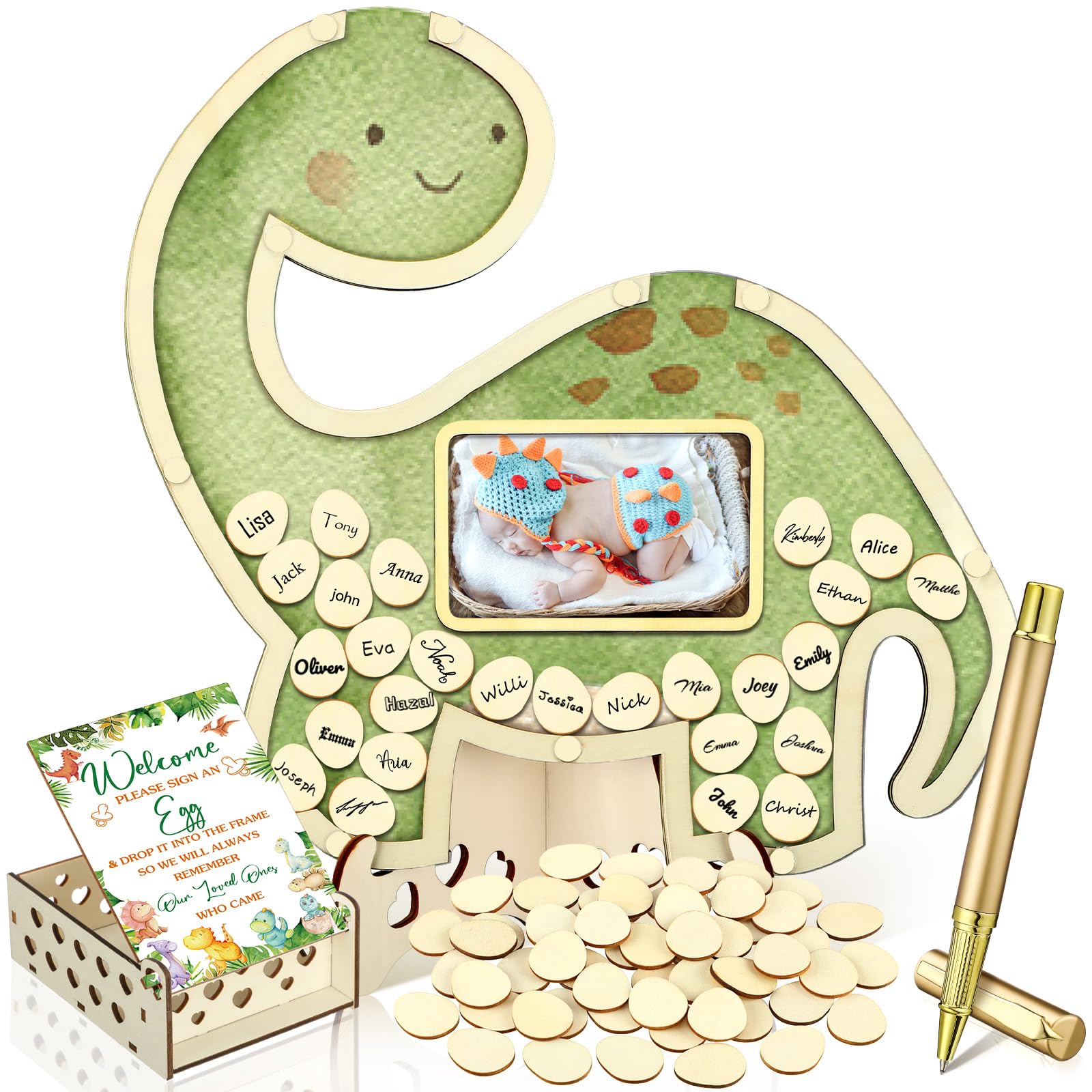 Reliable Quality: the dinosaur display card and baby shower pins are made of sturdy wood, strong and not easy to break; In addition, there is a bracket behind the display card, which can be displayed well, an attractive symbol of baby shower