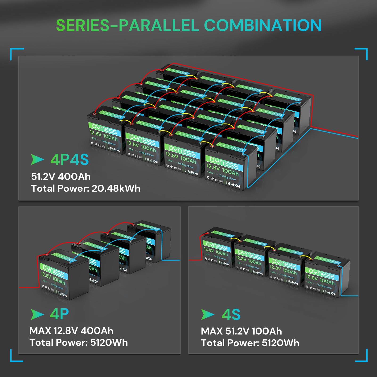 【Up to 6000+ Deep Cycles】Engineered for durability, Dyness 12.8 volt lithium battery supports over 4000+ Cycles at 100% DOD, 6000+ at 80% DoD, providing a lifespan of up to 10 years and significantly reducing long-term costs.