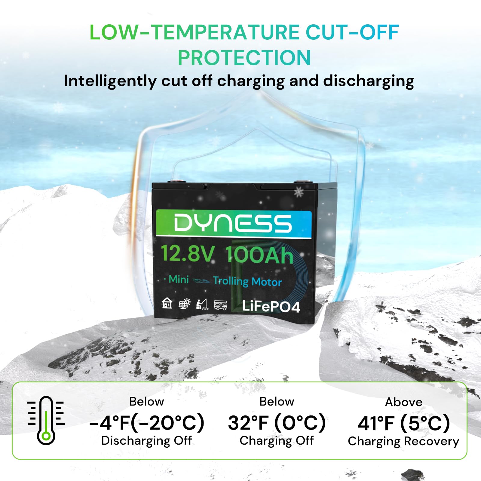 【Low-Temperature Protection】 Designed to operate efficiently even in cold environments, Dyness battery features low-temperature protection, ensuring reliable performance in various weather conditions. Automatically disconnects from charging when the cell temperature drops below 32°F (0°C). The discharging cut-off temperature is -4°F (-20°C), and charging resumes at 41°F (5°C).