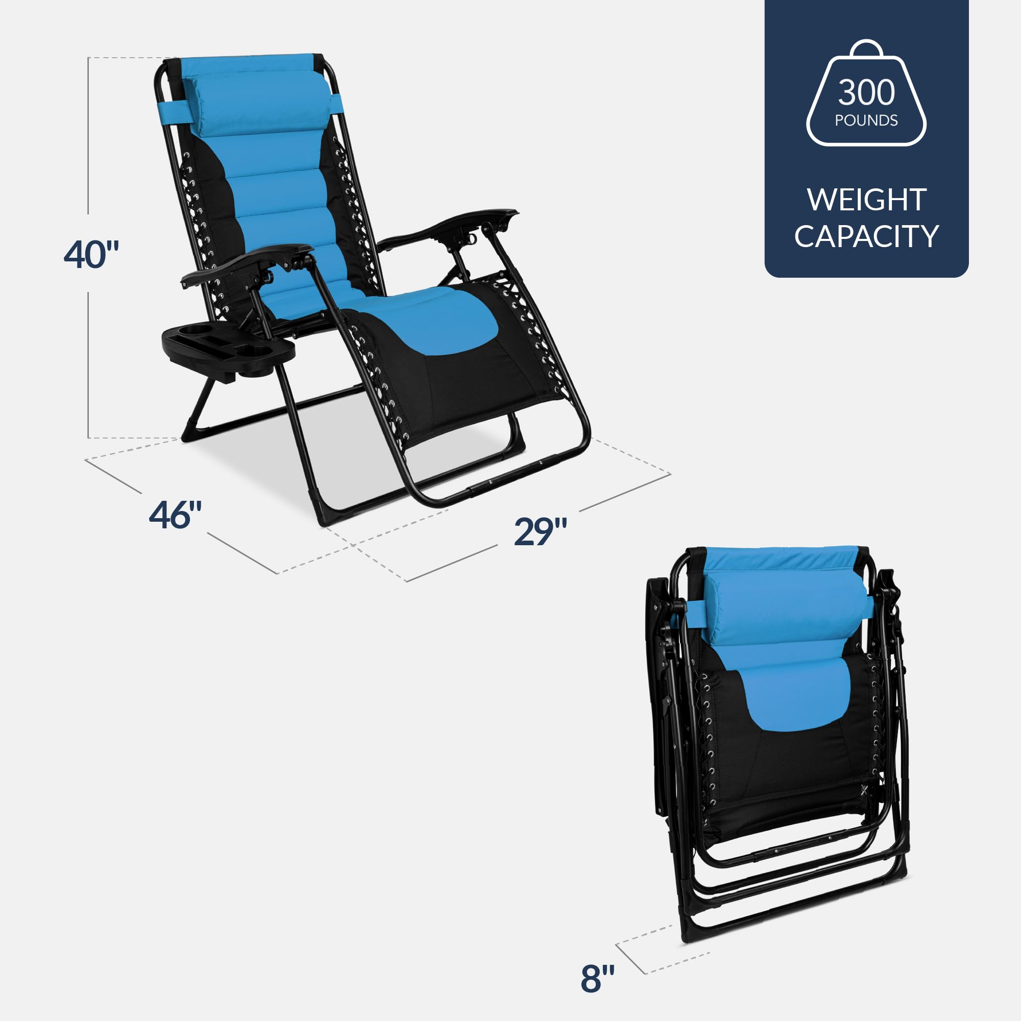 LOCKABLE RECLINING SYSTEM: An extra-wide seat smoothly glides into an ergonomic zero-gravity position with a system of locks and elastic for extra support; OVERALL DIMENSIONS: 46"(L) x 29"(W) x 40"(H); WEIGHT CAPACITY: 300lbs.