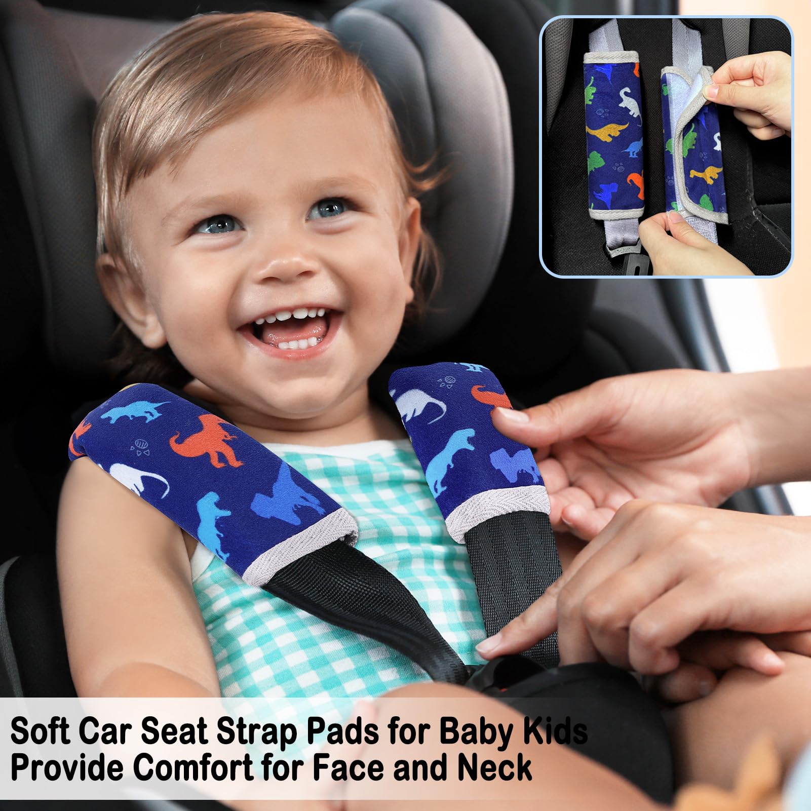 Seat Belt Cover Pad for Baby, Soft Seatbelt Cushion Covers for Kids 2Pcs Car Seat Strap Shoulder Pads for All Car Seats, Stroller, High Chair,Blue Dinosaur