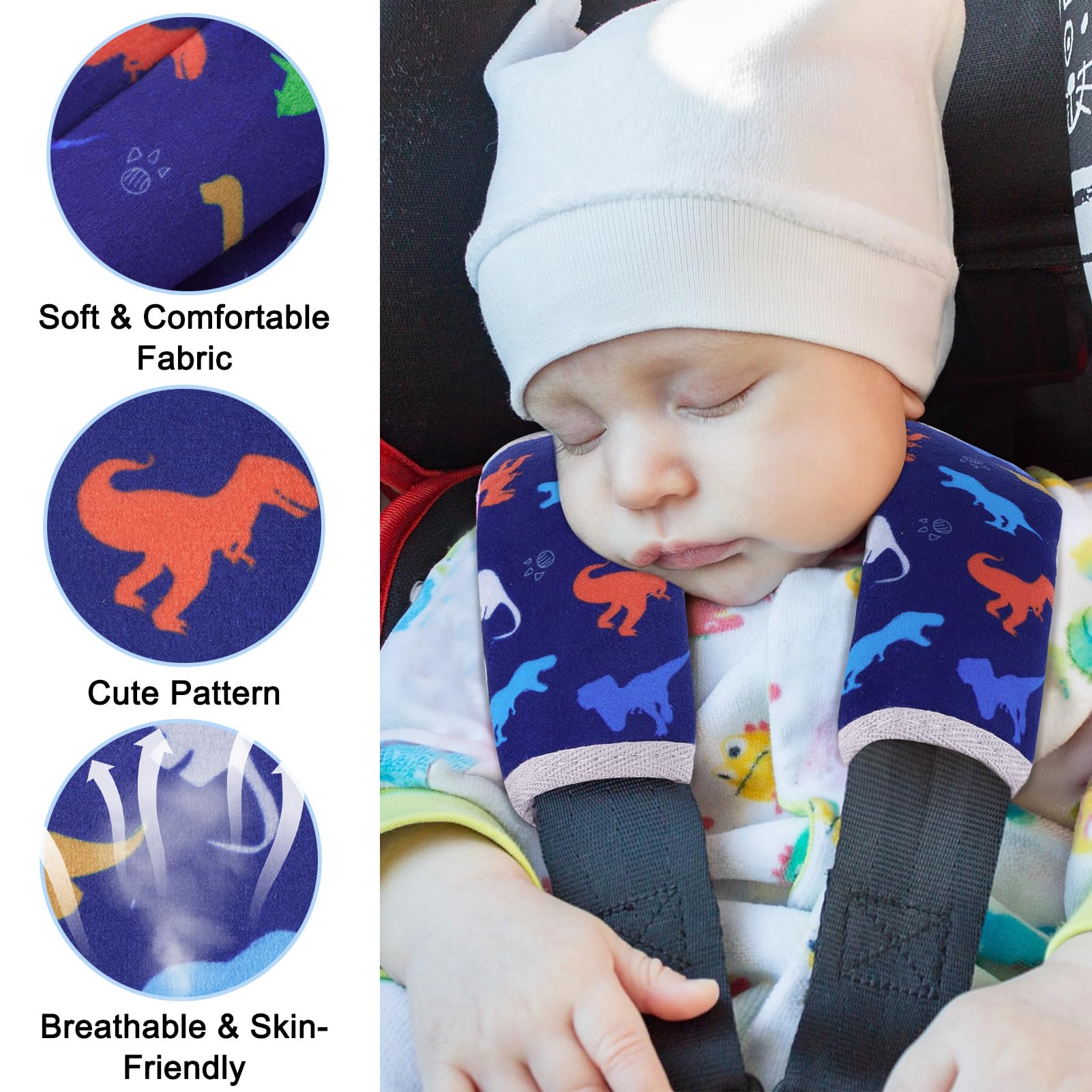 Soft & Comfortable Material: Our seat belt cover cushion for baby is made of soft and breathable fabric, it can protect baby's skin from being scratched by the seat belt; This seat belt cover with cute pattern and bright colors will make your kids happy