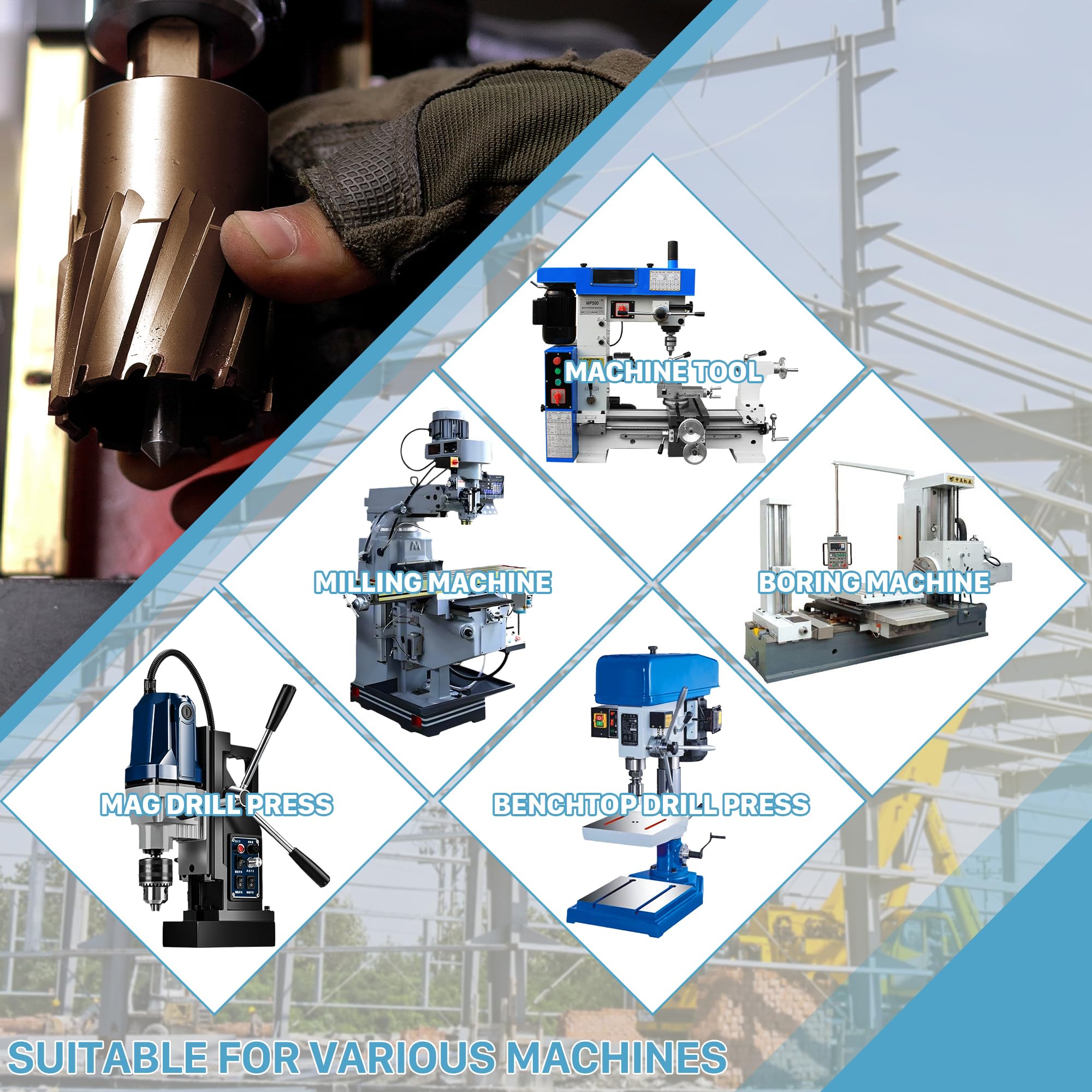 【Advanced PVD Nano-Coating】- Our annular drill bits, already exceptional, are further enhanced with a CrAlTiSiXN PVD nano-coating. This ultra-thin 3-micron layer reduces friction for smoother, faster cutting, increasing speed by 50% while maintaining a fine finish. The coating also significantly boosts wear and heat resistance, extending tool life by up to 10 times. Ideal for heavy-duty tasks, it handles greater loads, making it perfect for rough machining large workpieces.