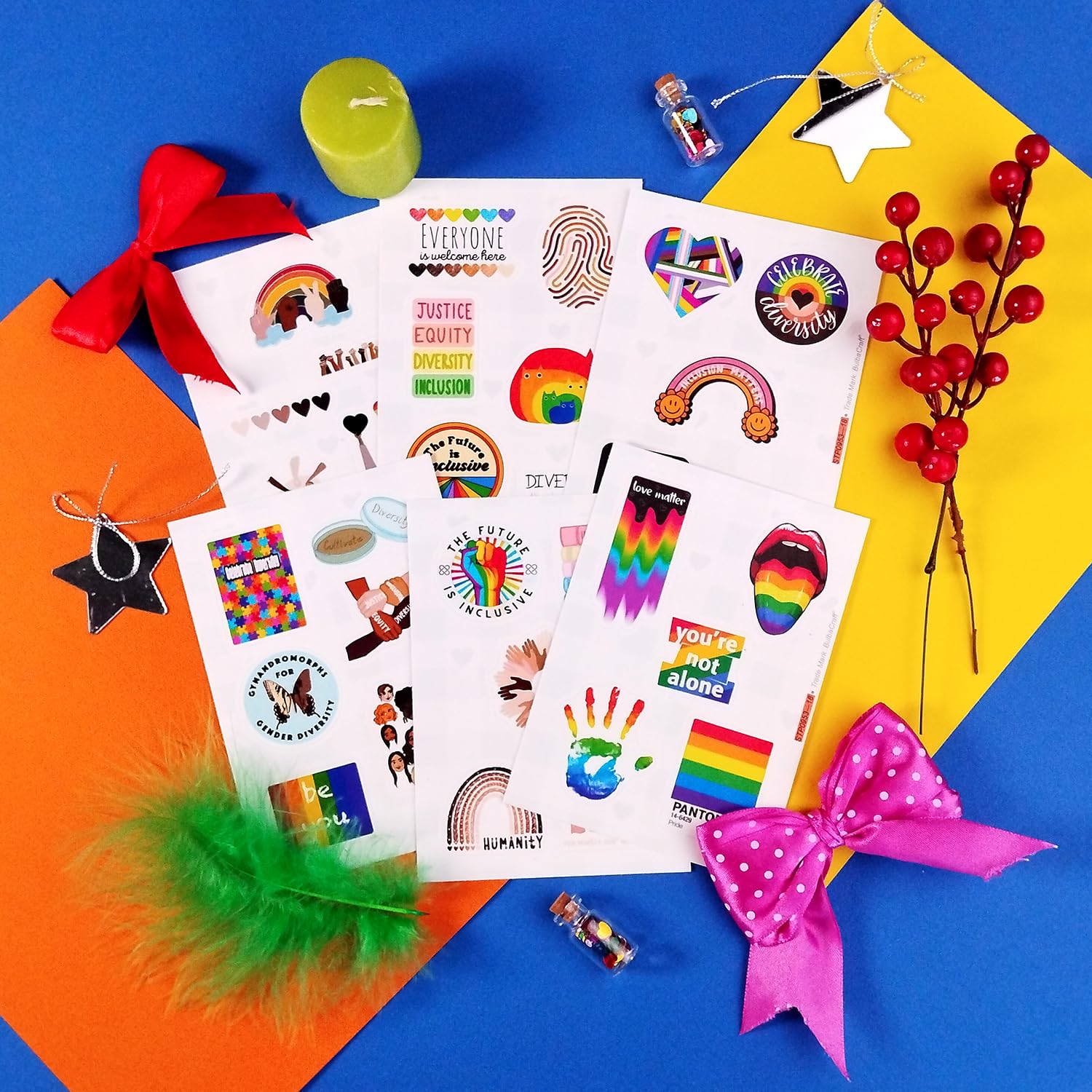 STICKER SHEETS - Diversity & Inclusion sticker pack contains several sheets. Sticker sheets are less likely to get damaged or bent compared to loose, cut-out stickers.