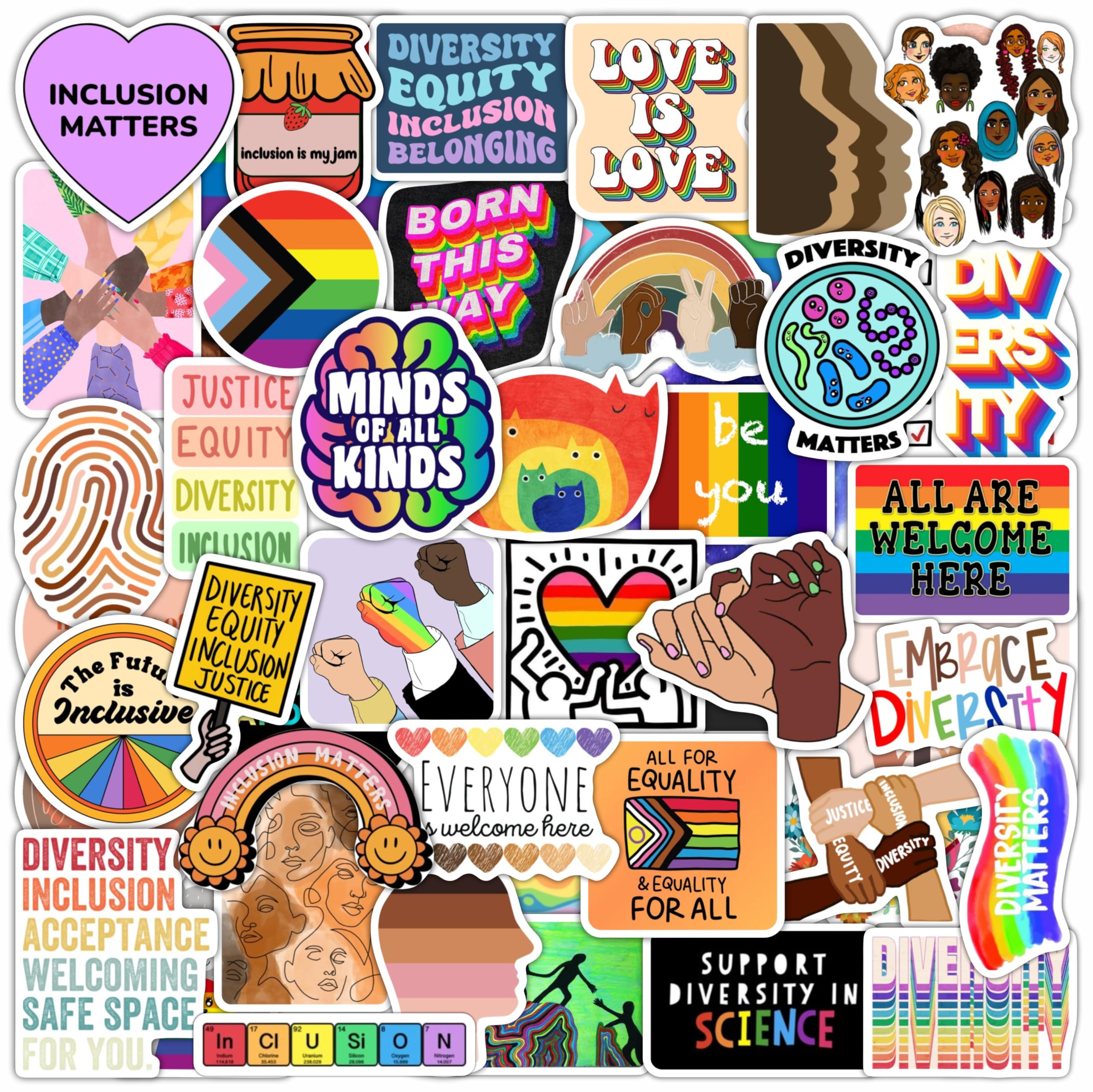 PERFECT GIFT - Surprise your friends and family with these fun and expressive Diversity & Inclusion stickers, perfect for any occasion. Stickers are a great gift for anyone who loves personalizing their belongings.