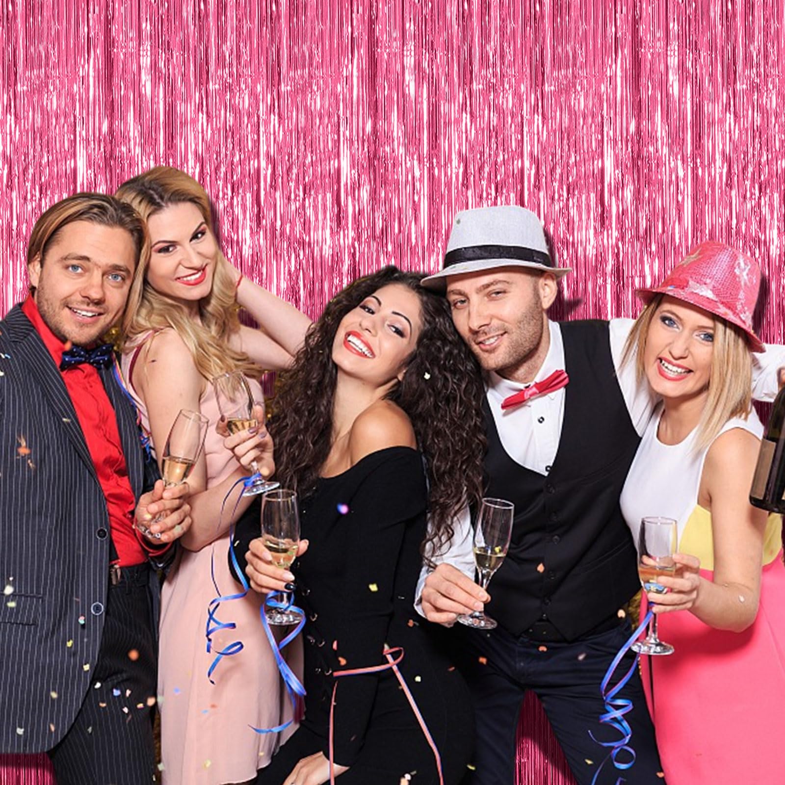 Foil Fringe Backdrop Pink: 5Packs/Set, enough quantity for your party decoration. Each pack curtains size is 3.28 ft x 6.56 ft, enough length for decorate your party. Perfect accessories for decorating doors and walls.