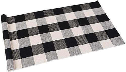 ⭐【BOTH CLASSICAL AND FASHION】: Black and white colors will never be out of date. This buffalo check runner rug is a great choice for modern decoration of farm decoration goods. With this buffalo plaid runner rug, your home decoration will become more comfortable , Natural and relaxed.